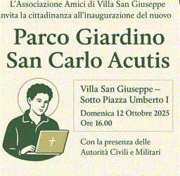 L’Associazione Amici di Villa San Giuseppe è lieta di annunciare un evento che segna una tappa importante per la comunità: l’inaugurazione del nuovo Parco Giardino, realizzato sotto Piazza Umberto I e intitolato a San Carlo Acutis, giovane beato della Chiesa cattolica e simbolo universale di fede, speranza e amore verso gli altri.