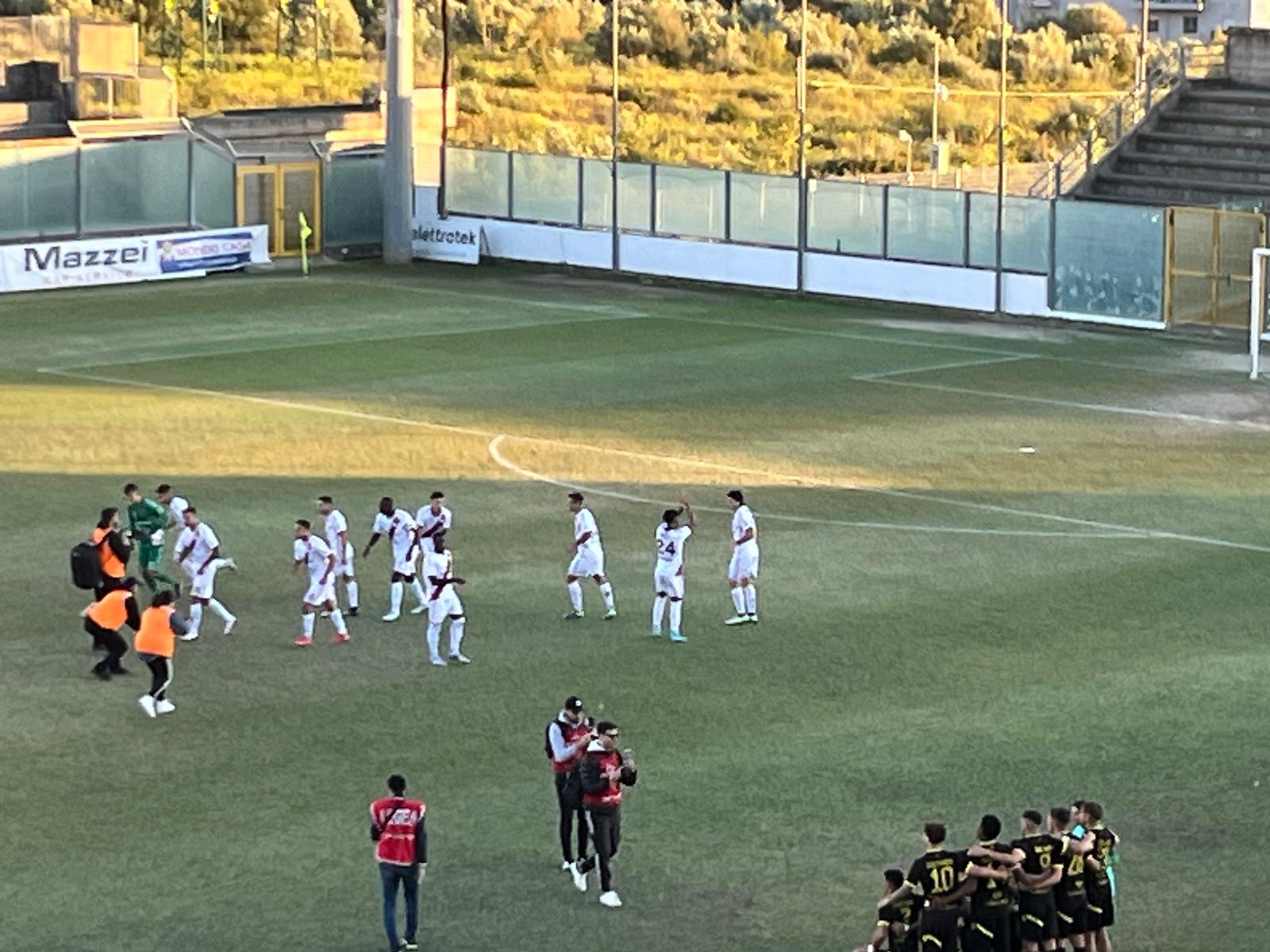 13 minuto: traversa del Sambiase. Da un calcio d’angolo la palla resta pericolosamente in area amaranto e Furiato, di controbalzo, colpisce la traversa.