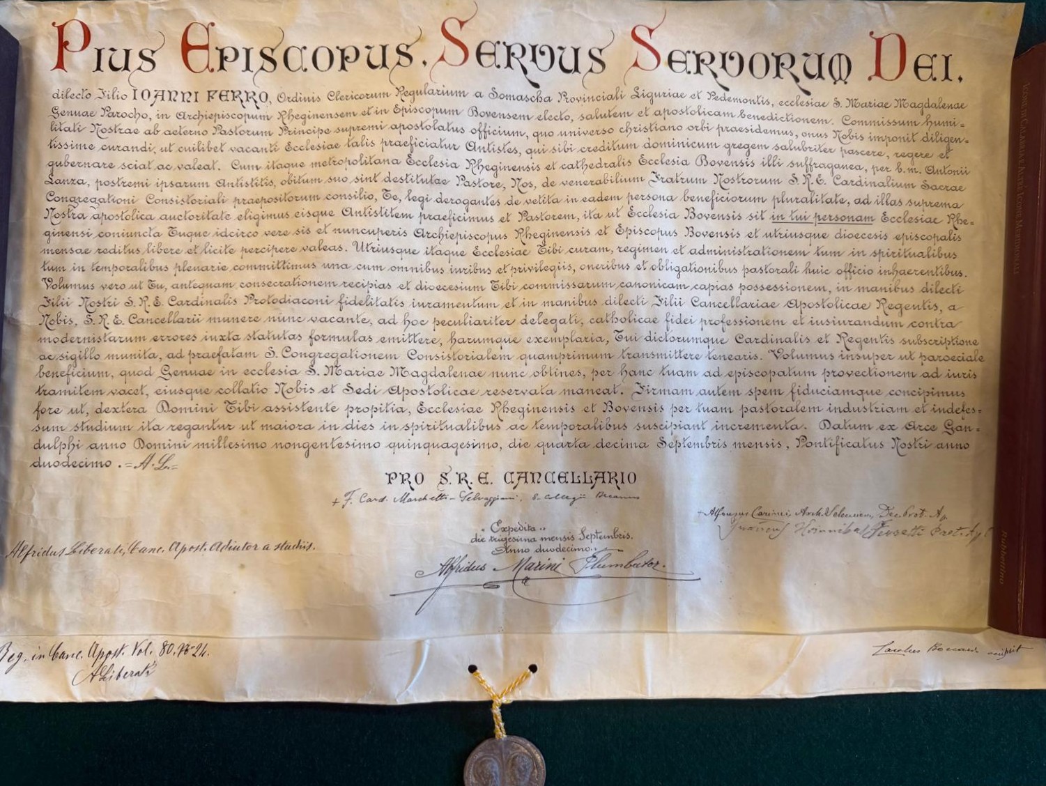 Il 29 Ottobre del 1950, il Card. Siri nella Cattedrale di Genova, consacrava Mons. Ferro Arcivescovo di Reggio Calabria. Il prossimo 11 marzo 2026, nel Giardino dei Giusti dell’Umanità di tutto il mondo al Monte Stella di Milano, l’Associazione per il Giardino dei Giusti Fondazione Gariwo, Unione delle Comunità Ebraiche Italiane e Comune di Milano, Mons. Ferro sarà annoverato tra i “Giusti della società civile 2026” assieme a Martin Luther King, Piero Calamandrei ed altri.