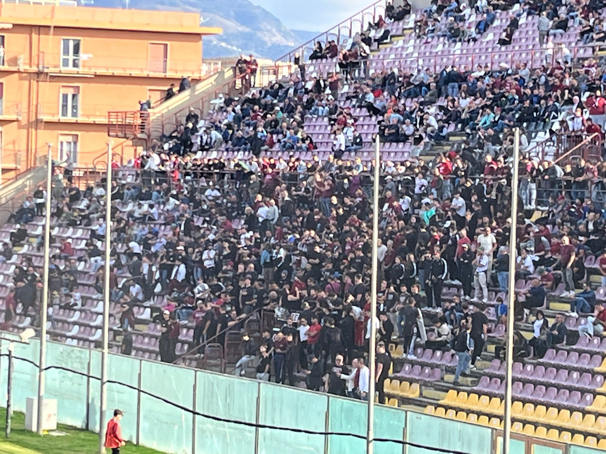15.03: partiti! La Reggina attacca dalla destra rispetto alla nostra postazione in tribuna.