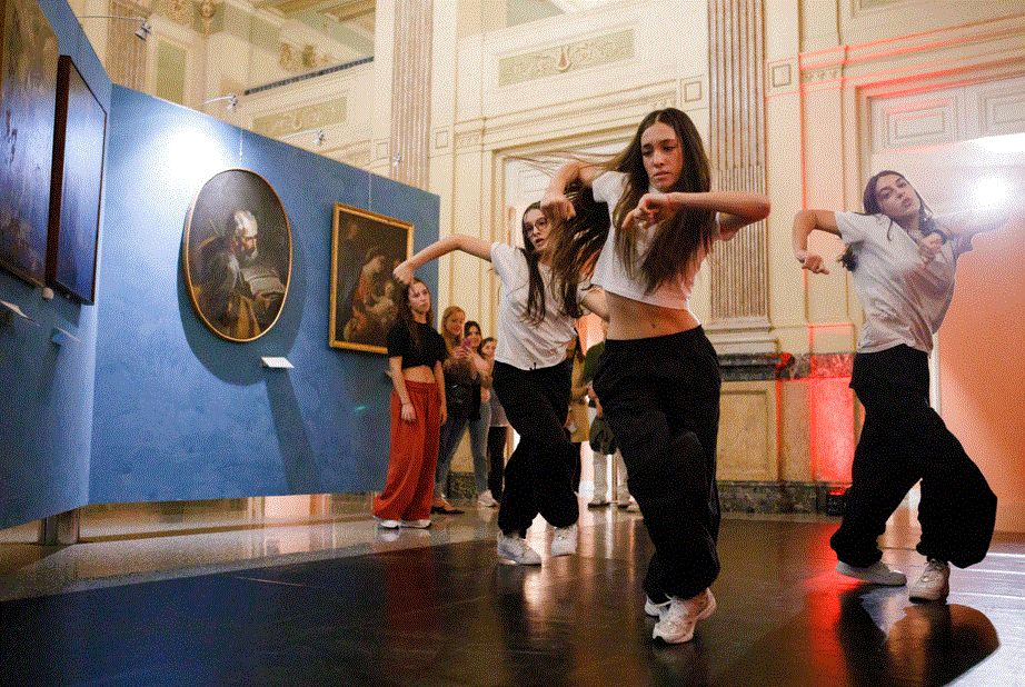 Soliste e piccoli gruppi selezionati hanno presentato performance originali ispirate a una selezione musicale eclettica, spaziando da Stromae a Kelis, da The Last Dinner Party a Nicki Minaj, per un pomeriggio dedicato alla creatività e al talento delle nuove generazioni in un dialogo sinergico tra arti diverse. Come ha spiegato Noemi Verduci: “Questa iniziativa è nata pensando proprio a un dialogo, una comunicazione tra la forma d’arte che è la danza, quindi il movimento, e quella che è invece la forma d’arte più statica che possiamo trovare qua presso la Pinacoteca. Abbiamo preparato proprio i ragazzi, giovanissimi tra i 10 e i 14 anni, pensando a loro come promessa giovanile della nostra scuola, dando l’opportunità di mettersi in gioco”.