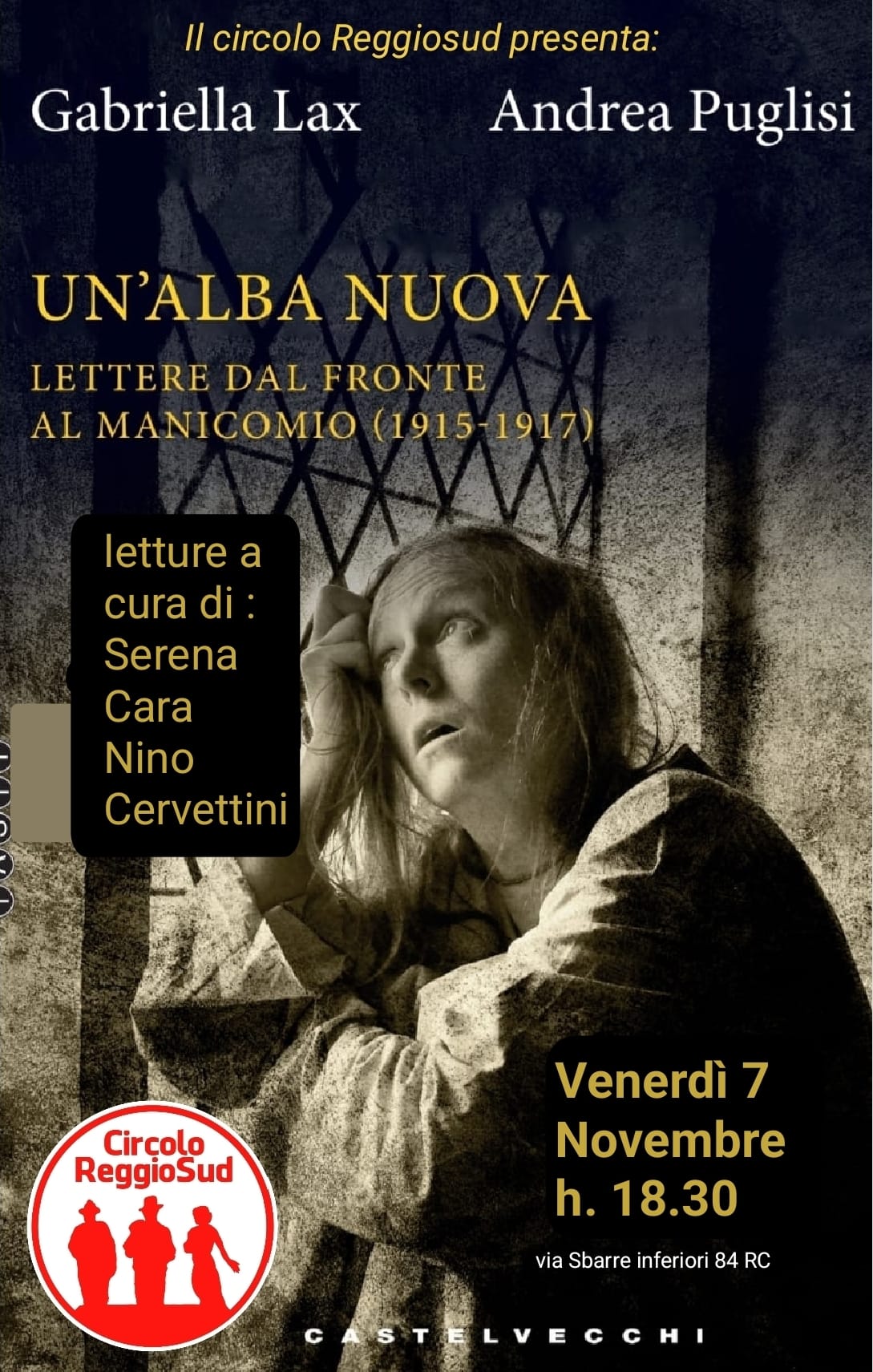 Si svolgerà oggi pomeriggio, al Circolo “Reggiosud”, sito a Reggio, in via Sbarre Inferiori N.84, alle ore 18:30la presentazione del libro “Un’alba nuova – Lettere dal fronte al manicomio (1915-1917)”, prodotto della fantasia di due autori reggini che il territorio va fiero, ovvero Gabriella Lax e Andrea Puglisi.