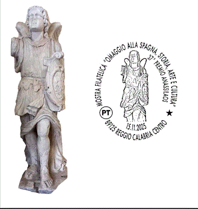 E dedicato all’Angelo Tutelare, l’opera custodita all’ingresso di Palazzo San Giorgio dopo il restauro che ne ha bloccato l’inevitabile degrado dovuto alla sua esposizione all’aperto, l’annullo filatelico promosso dall’Associazione Culturale Anassilaos e concesso da Poste Italiane in occasione della mostra documentale e filatelica “Omaggio alla Spagna”, realizzata nell’ambito della 37^ edizione del Premio Anassilaos, che sarà inaugurata presso la Villetta della Biblioteca “Pietro De Nava” sabato 15 novembre alle ore 9,00. L’iniziativa è patrocinata dal Comune, dal Dipartimento di Civiltà Antiche e Moderne dell’Università di Messina, dall’Archivio di Stato di Reggio Calabria e dal Liceo T. Campanella –Mattia Preti Frangipane di Reggio Calabria.
