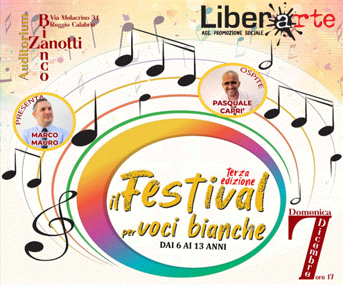 Torna il Festival Voci Bianche, concorso canoro dedicato ai talenti dai 6 ai 13 anni che negli ultimi due anni è diventato un vero e proprio trampolino di lancio. La terza edizione si preannuncia più ricca che mai e vedrà alla conduzione lo showman e presentatore Marco Mauro, volto noto del panorama televisivo regionale, affiancato sul palco dall’ospite speciale Pasquale Caprì, uno degli imitatori ed intrattenitori più amati del Sud Italia.