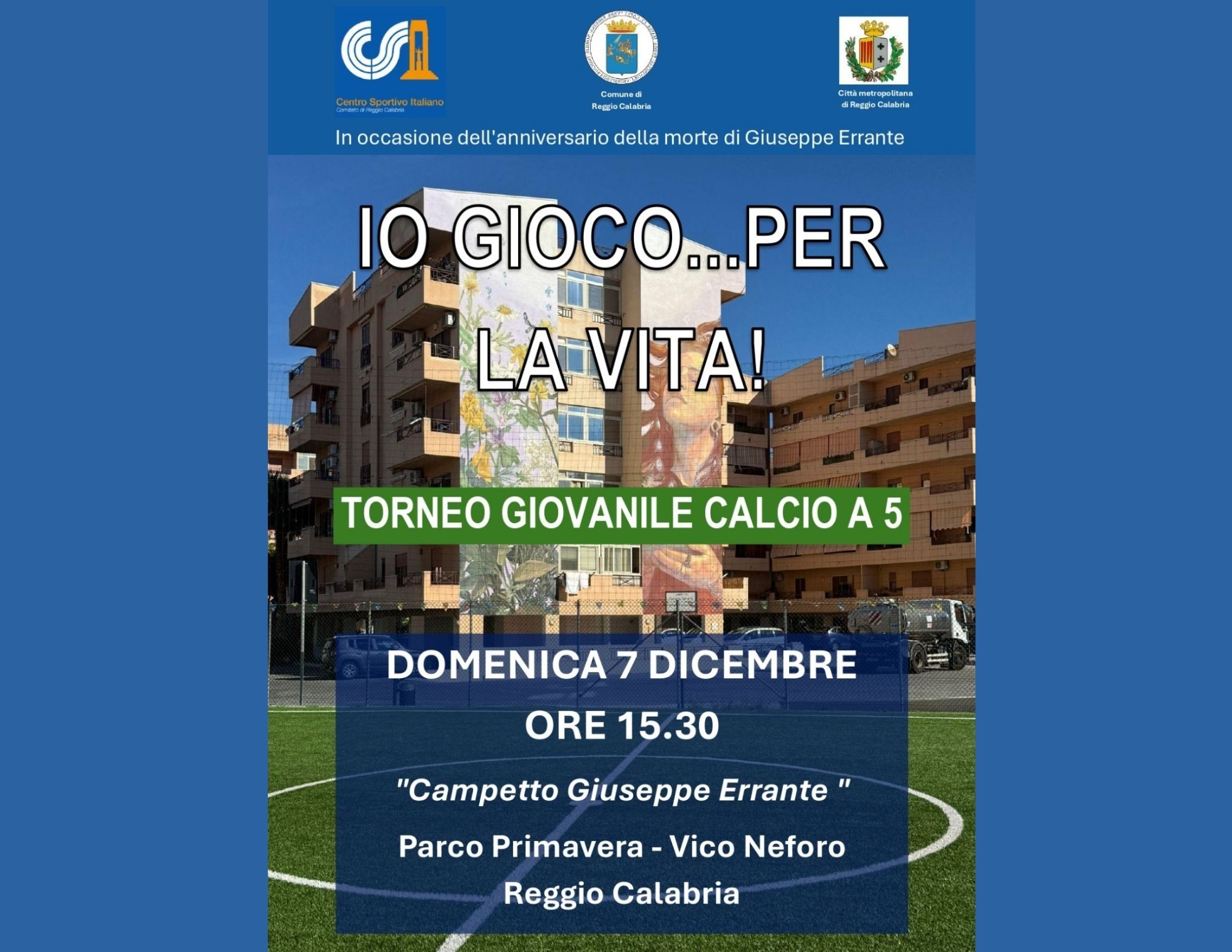 In occasione dell’anniversario della scomparsa di Giuseppe Errante, il Comune di Reggio Calabria, insieme alla Città metropolitana di Reggio Calabria e al Centro sportivo italiano, si unisce nel ricordo con un’iniziativa per celebrare i valori più autentici dello sport: partecipazione, comunità e vita. Il prossimo 7 dicembre dalle 15.30 il Campetto “Giuseppe Errante” del Parco Primavera in Vico Neforo ospiterà il Torneo Giovanile di Calcio a 5 “Io gioco… per la vita!”.