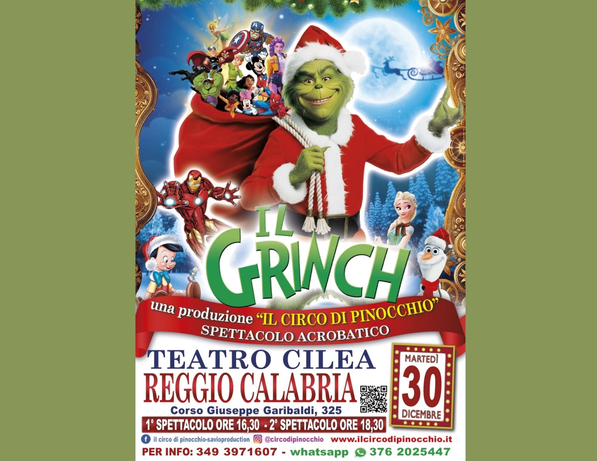 Al Teatro “Francesco Cilea”, il prossimo 30 dicembre, arriva “Il Grinch”,spettacolo acrobatico prodotto da “Il Circo di Pinocchio – Savio Production”.