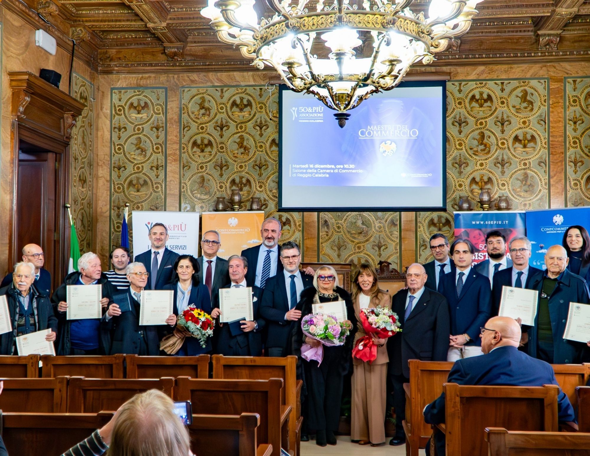 Oggi, nel salone della Camera di Commercio, si è svolta la cerimonia di consegna dei riconoscimenti ‘Maestri del commercio 2025’, istituiti dall’associazione ‘50&più’ d’intesa con Confcommercio.