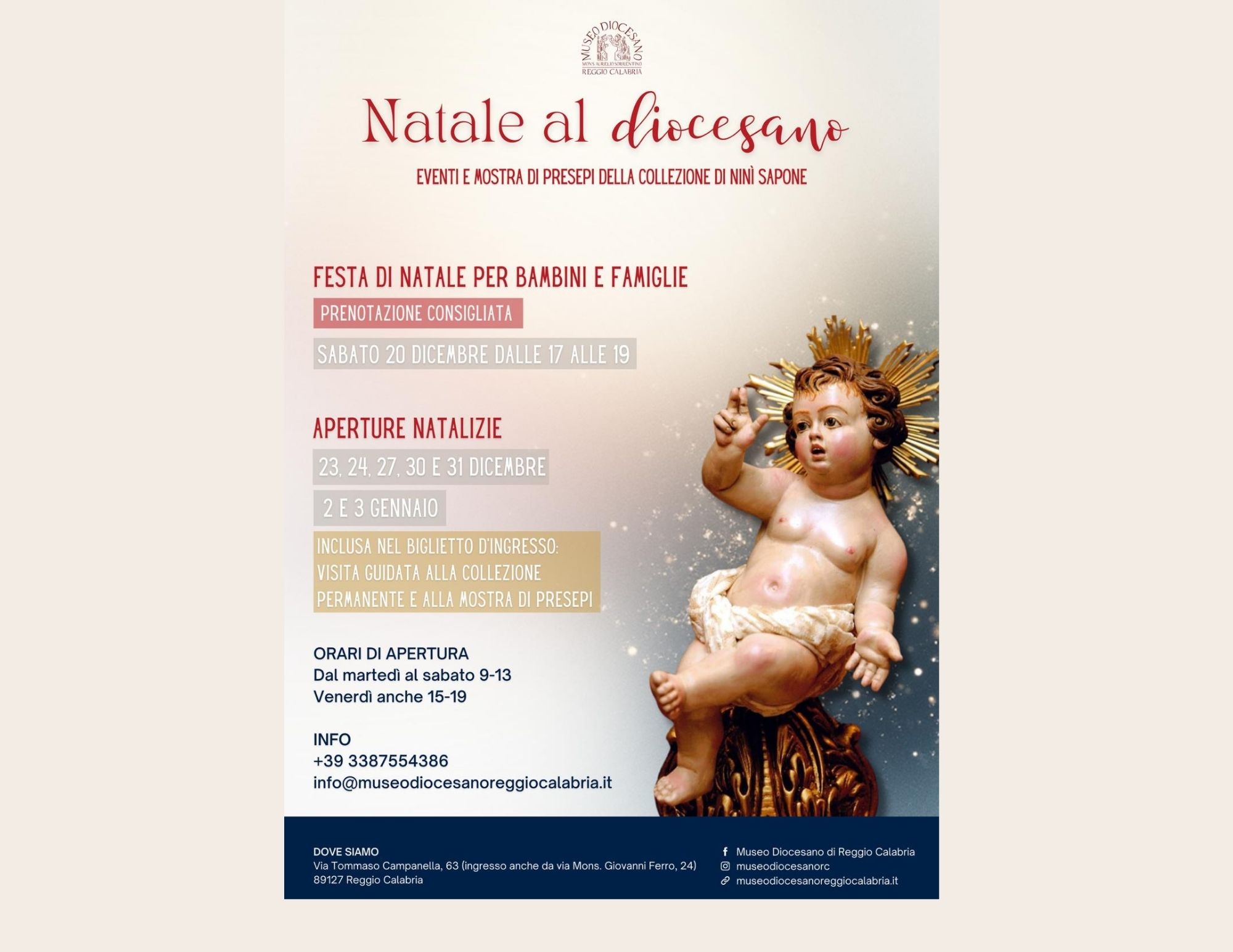 Sabato 20 dicembre, dalle ore 17.00 alle 19.00,  il Museo diocesano di Reggio Calabria rinnova il consueto appuntamento con la Festa di Natale riservata ai bambini.