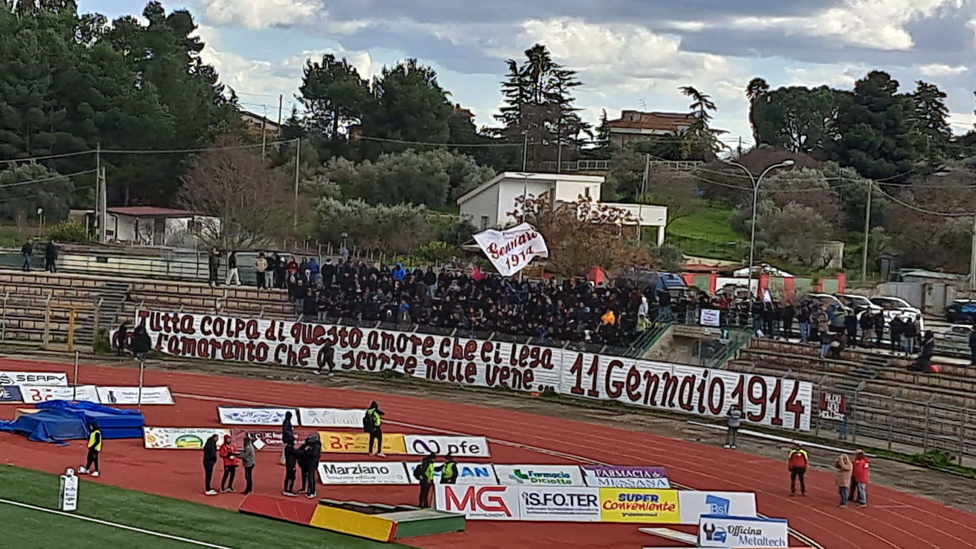 Poi sappiamo com’è andata: percorso altalenante per la squadra di casa che, in 18 partite, finora ha ottenuto 9 vittorie, 5 pareggi e 4 sconfitte, disastroso quello iniziale degli amaranto che, solo grazie a ben sei vittorie consecutive nelle ultime giornate, sono riusciti a conquistare una posizione in classifica che li distanzia di soli 2 punti dai nisseni e 4 dalle battistrada Nuova Igea Virtus e Savoia.