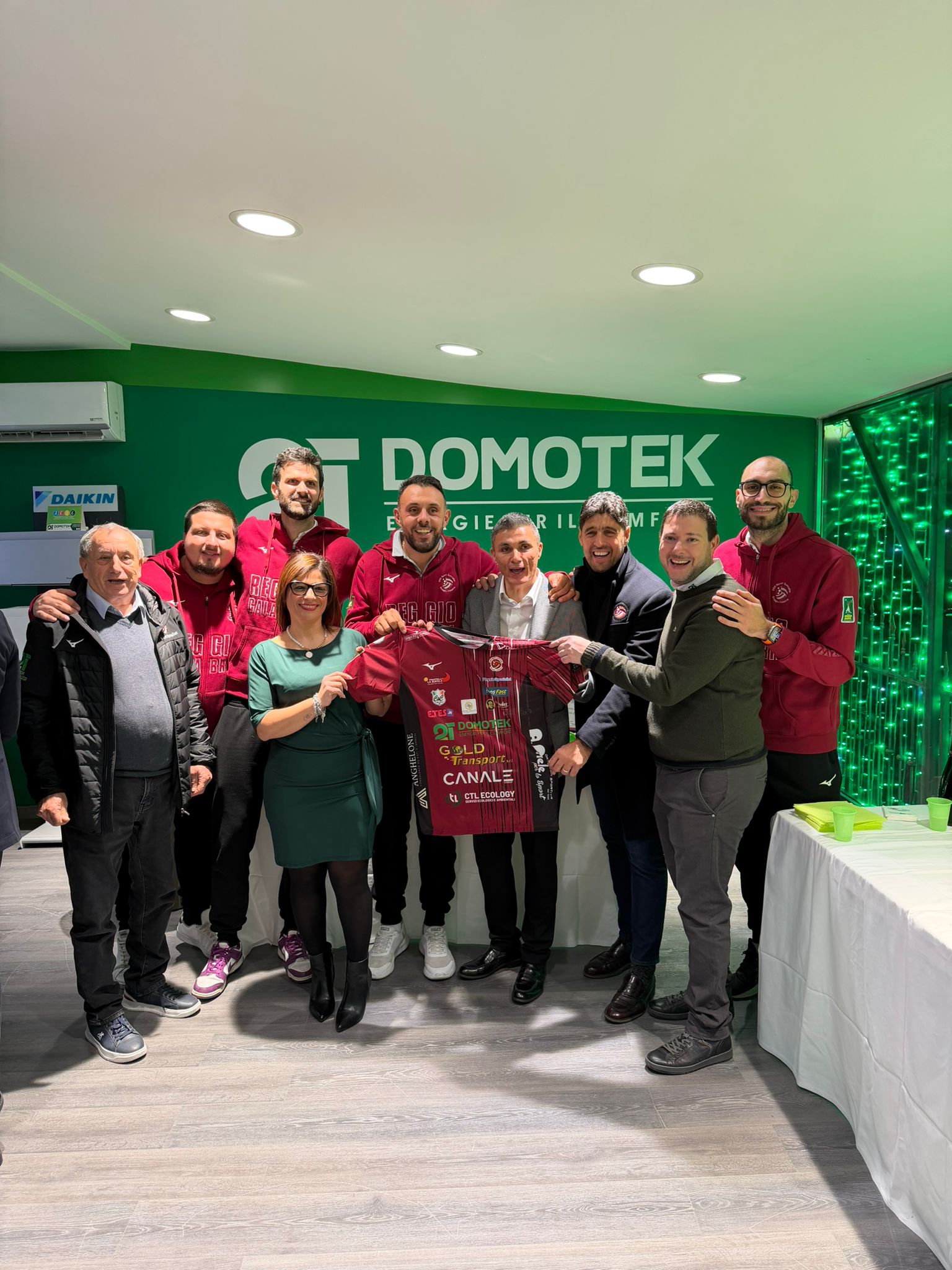 Alla cerimonia celebrativa, tenutasi, erano presenti per l’azienda Maria Luisa Ariobazzani, Amministratrice, Giovanni Di Stefano, Socio Fondatore, e Giovanni Tomasello, Responsabile Operativo, i dipendenti e gli stakeholders di casa Domotek. A rappresentare interamente il mondo della squadra di Serie A3, fresca della qualificazione alle Final Four di Coppa Italia conquistata sabato sera, erano presenti tutti i giocatori, il mister Antonio Polimeni, il Direttore Generale Marco Tullio Martino, il Direttore Sportivo Cesare Pellegrino e il Team Manager Mirko Crucitti.