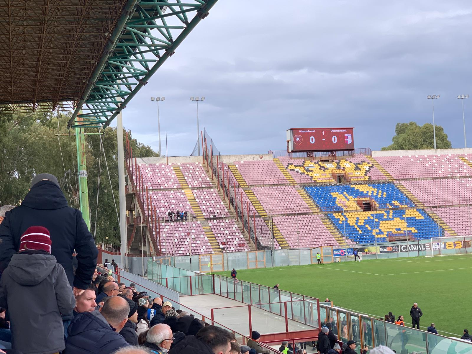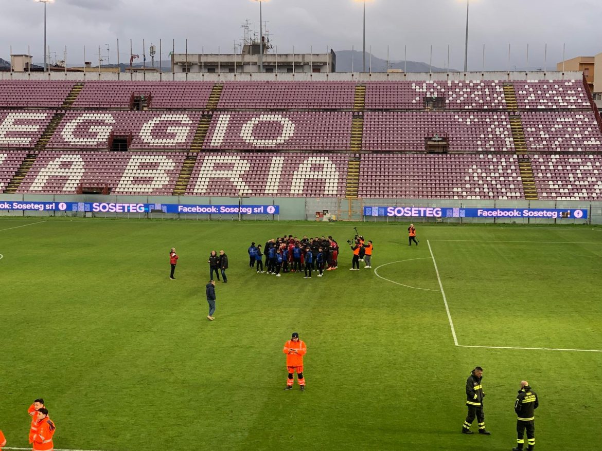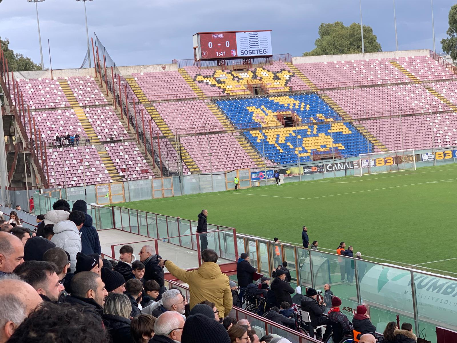 14.05: ancora semi vuoto il Granillo. Ci si attendeva una maggior flusso di pubblico ma, probabilmente, il timore di brutto tempo, ha suggerito a tanti tifosi di restare a casa. Al momento il cielo è sono nuvoloso, nessun cenno di pioggia. Clima ideale per una partita di calcio.