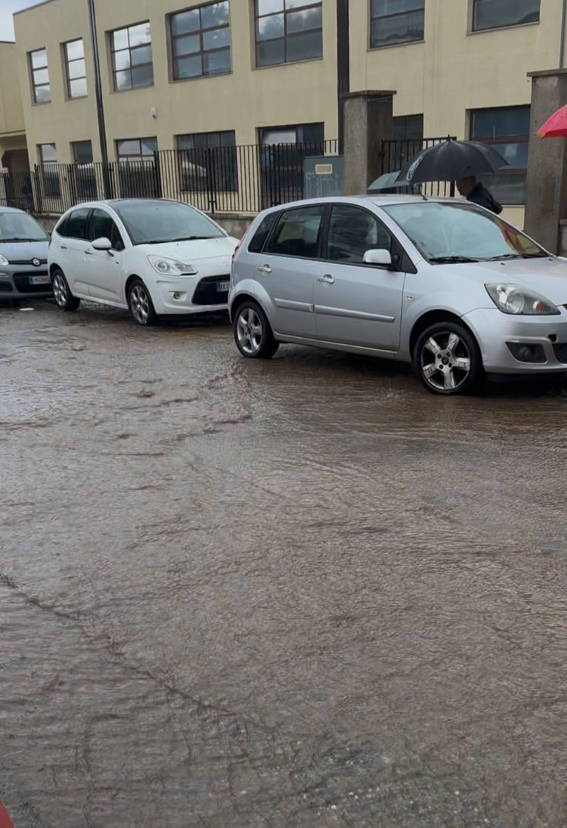 Mercoledì scorso è stato persino difficile accedere all’ingresso della scuola primaria: veri e propri fiumi d’acqua — come documentato dalle fotografie — hanno invaso la carreggiata e parte del marciapiede, compromettendo sicurezza e accessibilità.