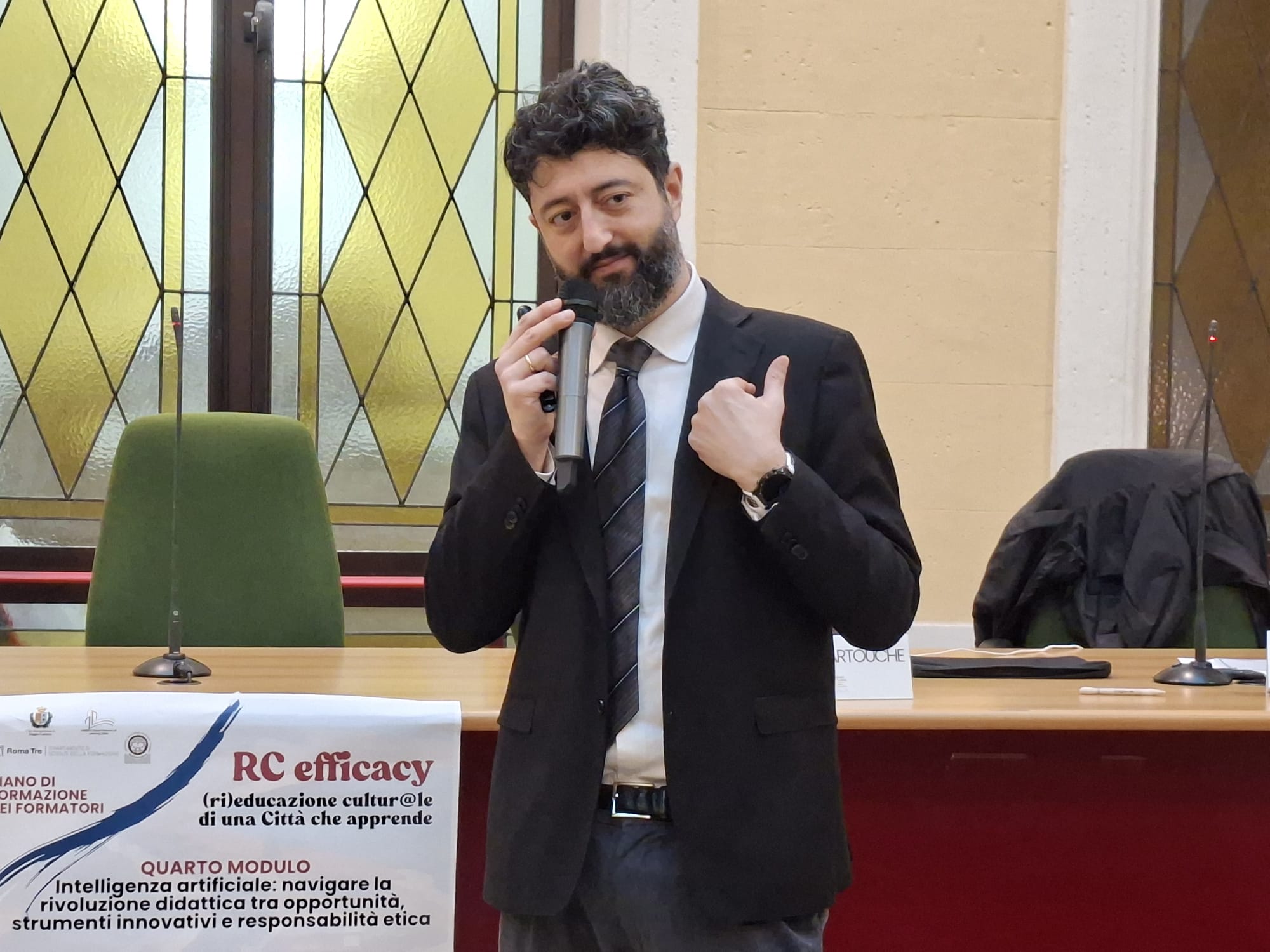 Tema dell’appuntamento odierno, che ha coinvolto numerosi docenti e formatori del territorio, è stato l’intelligenza artificiale nella didattica, un’indagine attenta e approfondita affrontata da Francesco Agrusti e Beatrice Partouche di Uni RomaTre sulla opportunità, gli strumenti innovativi e la responsabilità etica insiti nell’attuale rivoluzione digitale e tecnologica.
