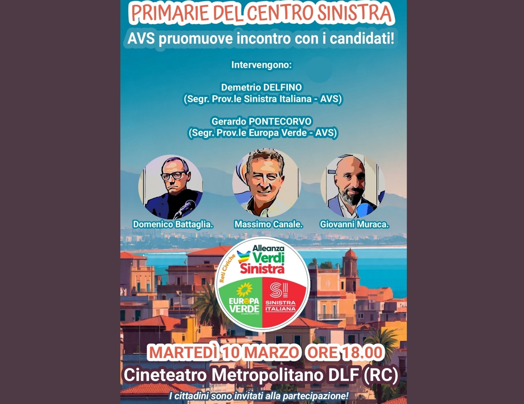 Sarà possibile inviare domande o curiosità ai candidati Domenico Battaglia, Massimo Canale e Giovanni Muraca, con un’e-mail a Sinistraitaliana.avs.rc@gmail.com indicando: nome e cognome, a chi è rivolta la domanda e un breve testo entro e non oltre lunedì 9 marzo alle ore 12.