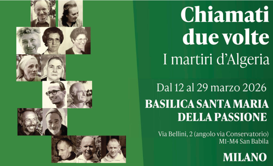 Il Centro Culturale di Milano, in collaborazione con l’Arcidiocesi di Milano, il Centro missionario PIME, la Comunità pastorale SANTI PROFETI e l’Associazione italiana CENTRI CULTURALI, presenta la mostra “Chiamati due volte. I martiri d’Algeria” negli spazi della Basilica di Santa Maria della Passione di Milano dal 12 al 29 marzo 2026.