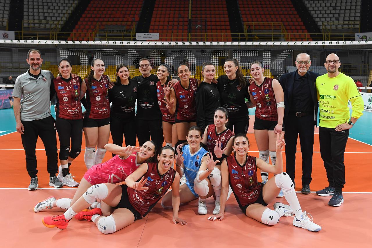 Spettacolare prestazione del capitano Suelen Oliveira. Bene Giorgia Fiorini al palleggio ma è il gruppo la vera forza.