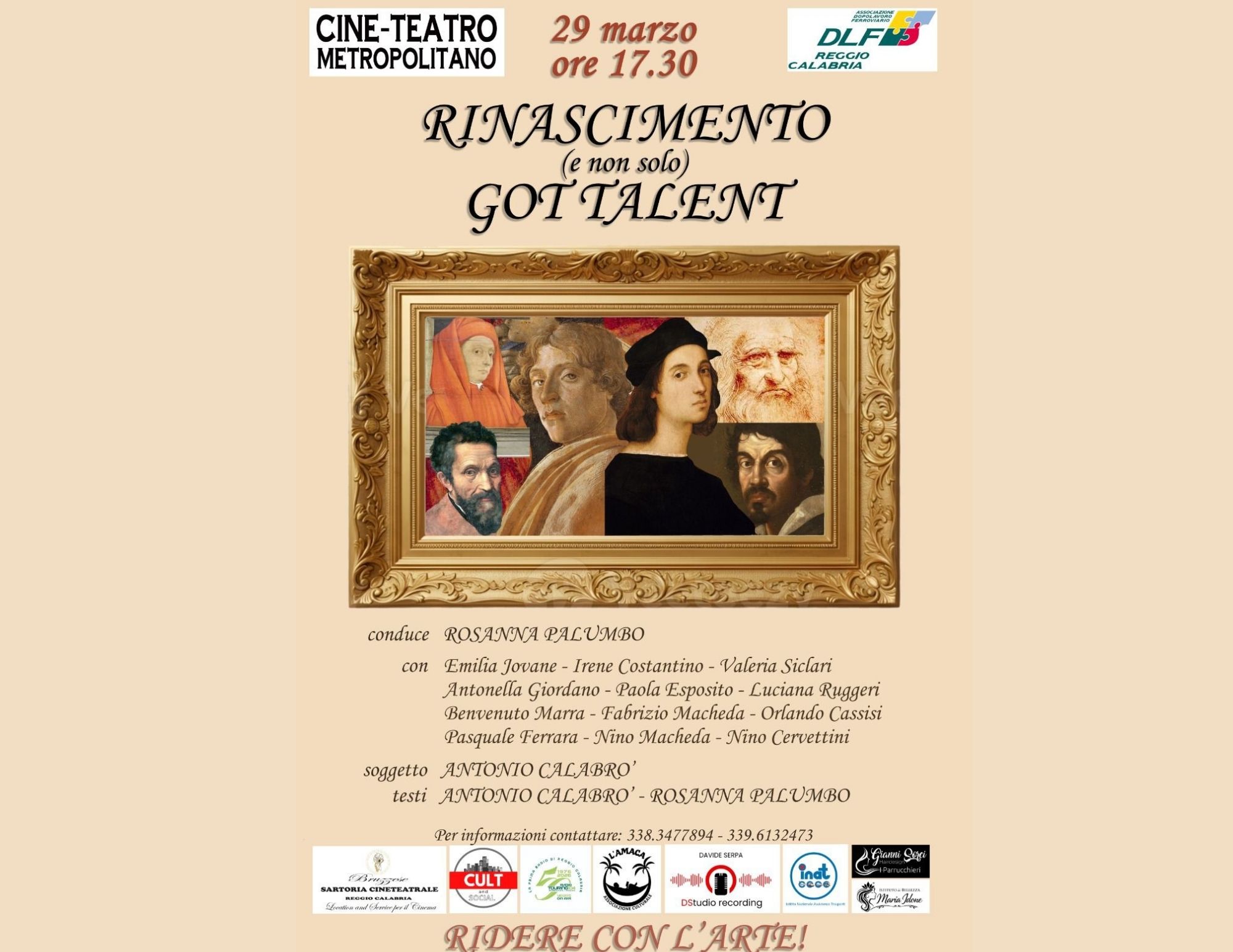Giotto che litiga con Botticelli, Leonardo discute con Michelangelo e Caravaggio prova a rubare la scena a Raffaello: è ciò che succede in “Rinascimento (e non solo) Got Talent”, lo spettacolo in programma domenica 29 marzo alle ore 17:30 al Cineteatro Metropolitano DLF di Reggio Calabria.