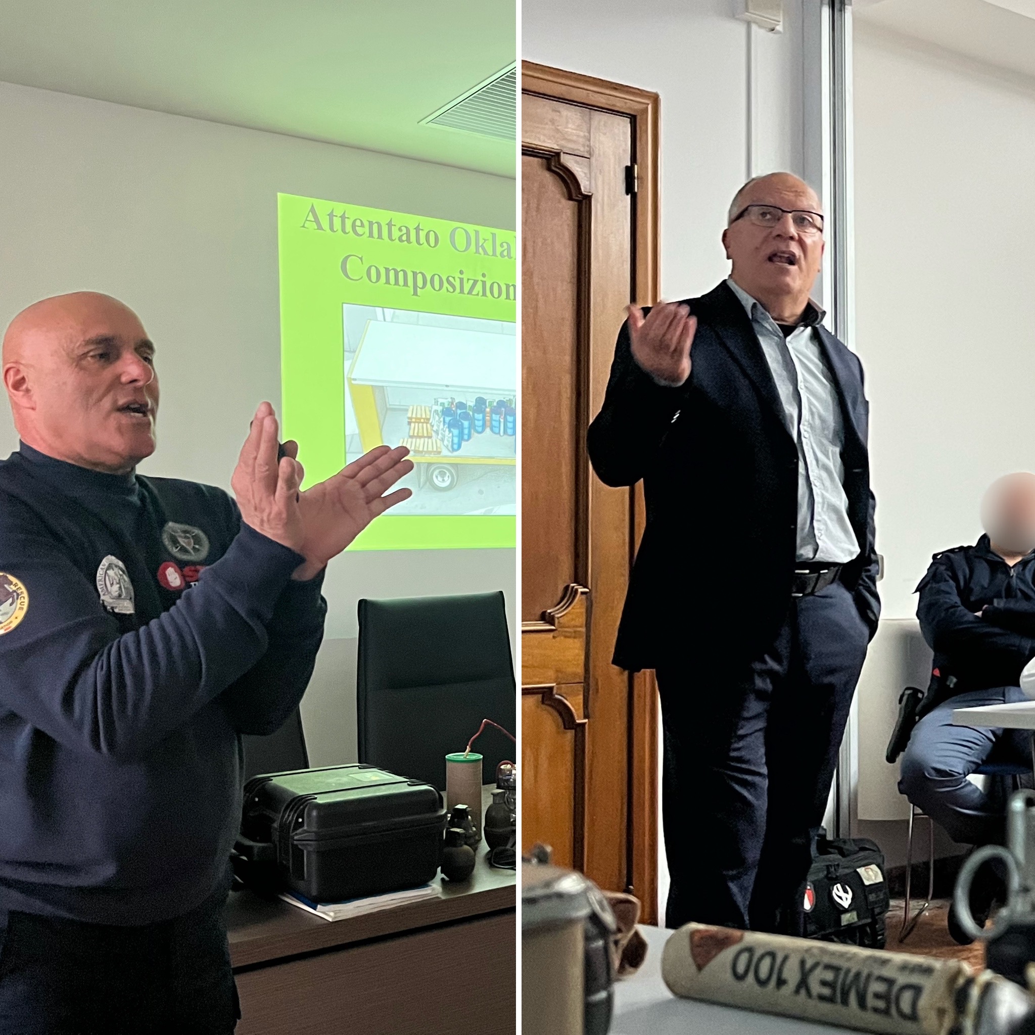 L’ultima giornata è stata dedicata a una “disamina forense” di alcuni tra i più significativi attentati terroristici della storia recente, tra cui quello di Oklahoma City del 1995. Attraverso un’analisi incrociata strutturale ed esplosivistica, l’Artificiere Sergi ha evidenziato le falle costruttive e procedurali che hanno amplificato i danni, concludendo poi con una lezione sulle tecniche di demolizione controllata.