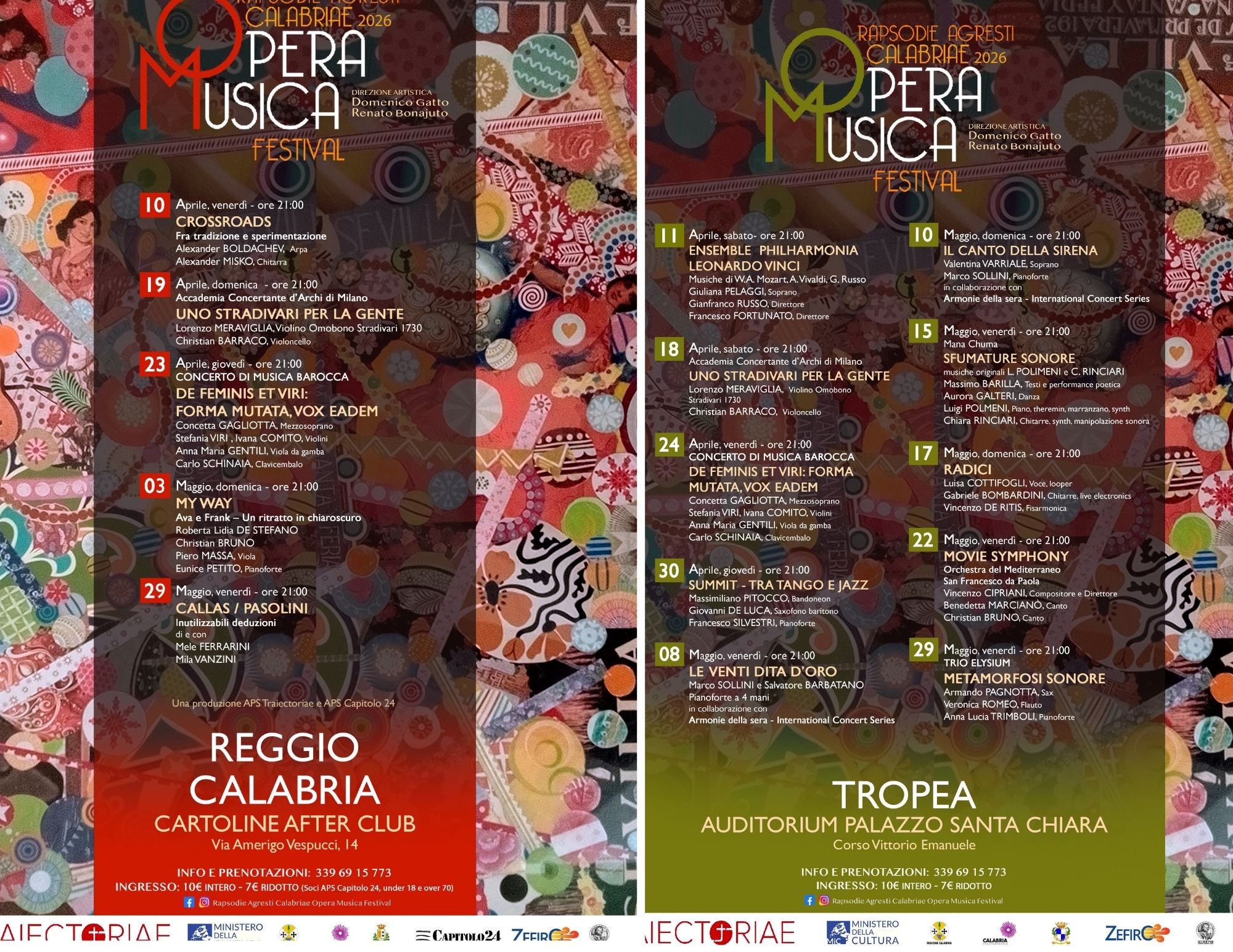 Dopo il successo dell’edizione 2025, conclusasi lo scorso dicembre, torna il “Rapsodie Agresti Calabriae Opera Musica Festival”: inizia  il 10 aprile la programmazione 2026 del festival, diretto da Domenico Gatto e Renato Bonajuto e promosso da Traiectoriae, con il sostegno del Mic – Fondo nazionale per lo spettacolo dal vivo.