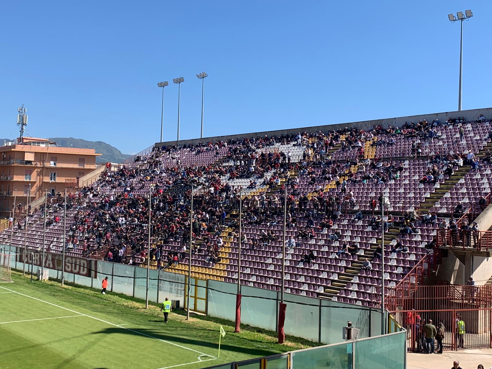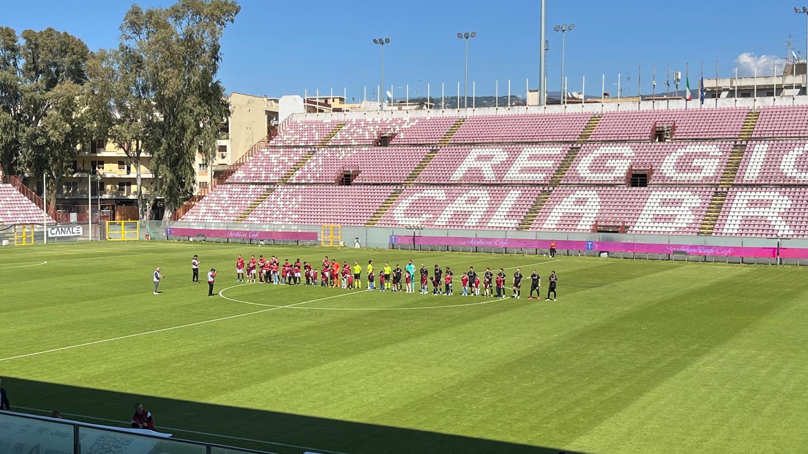 La Reggina attacca dalla destra alla nostra postazione in tribuna. I padron15.02: squadre in campo.