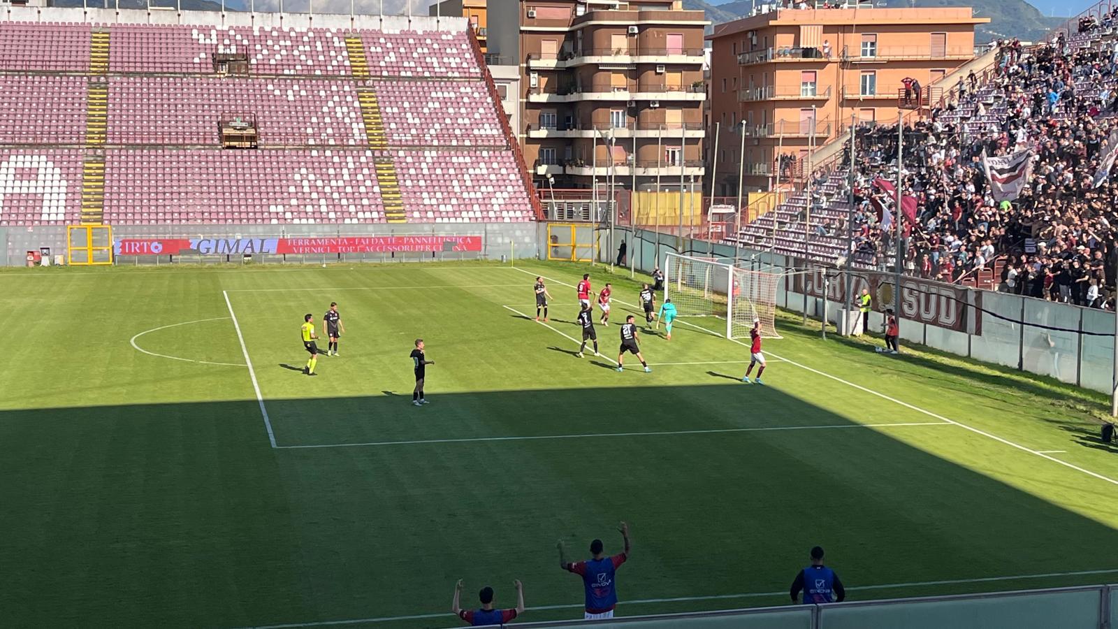13 minuto: superiorità territoriale degli amaranto ma la prima occasione è del Paternò con l’under Lucca che, da fuori area, approfittando di un errore in uscita di Distratto, sferra un tiro che Lagonigro devia con difficoltà contro la traversa. Mugugni del pubblico.