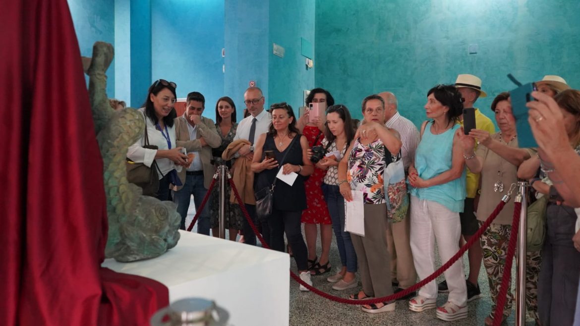 I sindaci facente funzioni della Città Metropolitana e del Comune, Carmelo Versace e Paolo Brunetti, e l’assessora comunale alla Cultura, Irene Calabrò, hanno accolto, presso la Pinacoteca civica, i partecipanti alla “Passeggiata patrimoniale Liberty”, l’evento promosso dall’associazione “Scalinata Monumentale di Via Giudecca” per celebrare l’art nouveau a Reggio Calabria in occasione del “Nouveau week”. Al termine di un percorso fra le vie del centro per conoscere e scoprire magnifici palazzi storici che raccontano un’epoca ed uno stile architettonico capace, ancora oggi, di suscitare forti emozioni e sentimenti positivi, amministratori e cittadini si sono ritrovati ad apprezzare i tre Tritoni dell’antica fontana della Pescheria, esposti in Pinacoteca su supporti realizzati dagli allievi dell’Accademia delle Belle Arti.