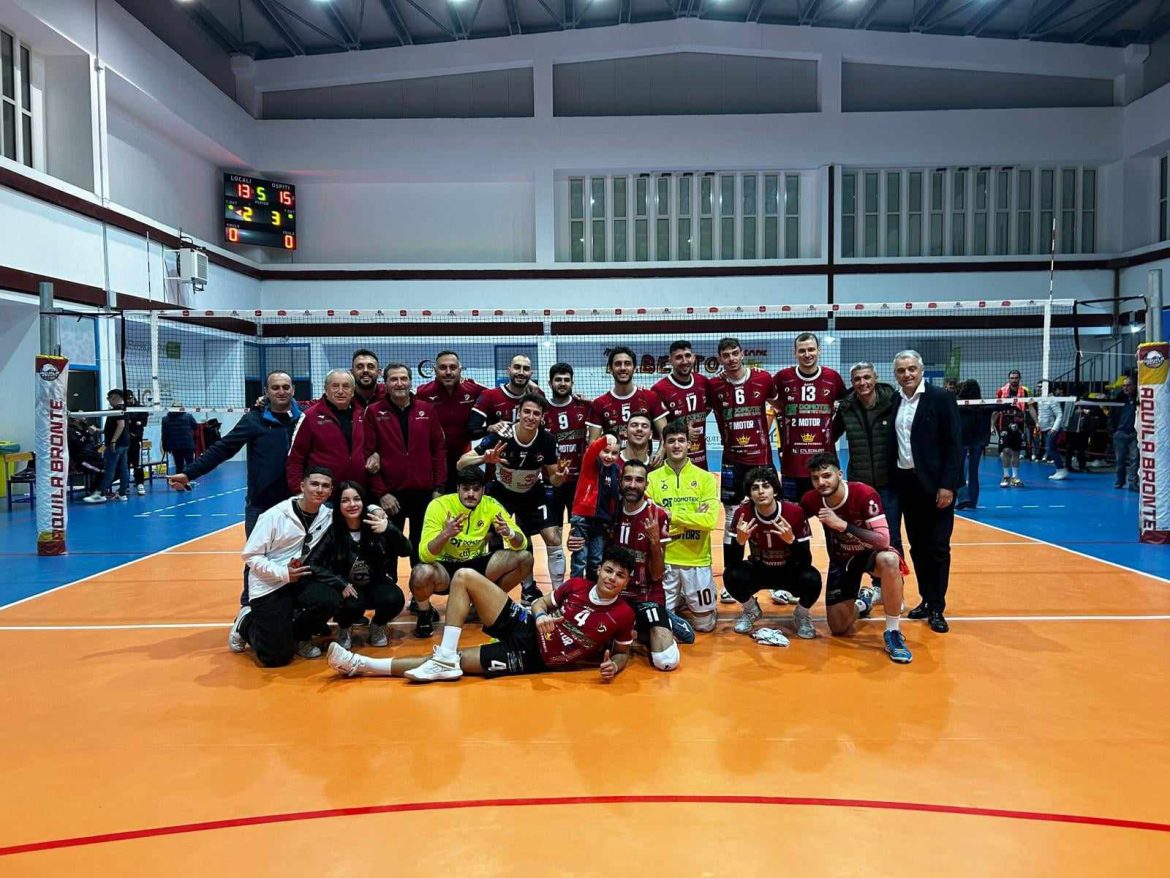 Il rientro sul terreno di gara dei reggini per il terzo gioco ha dato subito l’impressione che lo spartito suonato sarebbe stato diverso e così è stato. A far rullare i tamburi battenti è stato, neanche a dirlo, un Laganà imperioso, ma per scrollarsi di dosso l’Aquila Bronte versione top, lo sforzo è stato prolungato. Sia pur costantemente lì a scandire i palpiti del set, il semaforo verde è scattato soltanto sul 22-25. La quarta porzione del match ha alzato ulteriormente l’asticella del botta e risposta al punto da essere destinata al 29-27 del pugnace team di mister Cartillone che ha avuto la forza mentale di recuperare dal 24-20 Domotek. Tutto rinviato, dunque, al tie break che ha messo in mostra il graffio cinico del gruppo di coach Polimeni che, pur corazzata, già da una settimana, dalla matematica conquista del primato definitivo in classifica, ha mantenuto fede ai meriti dimostrati nel corso della stagione intera acciuffando il 13-15 che aggiunge altri due punti ad un ruolino di marcia incontaminato dalle sconfitte.