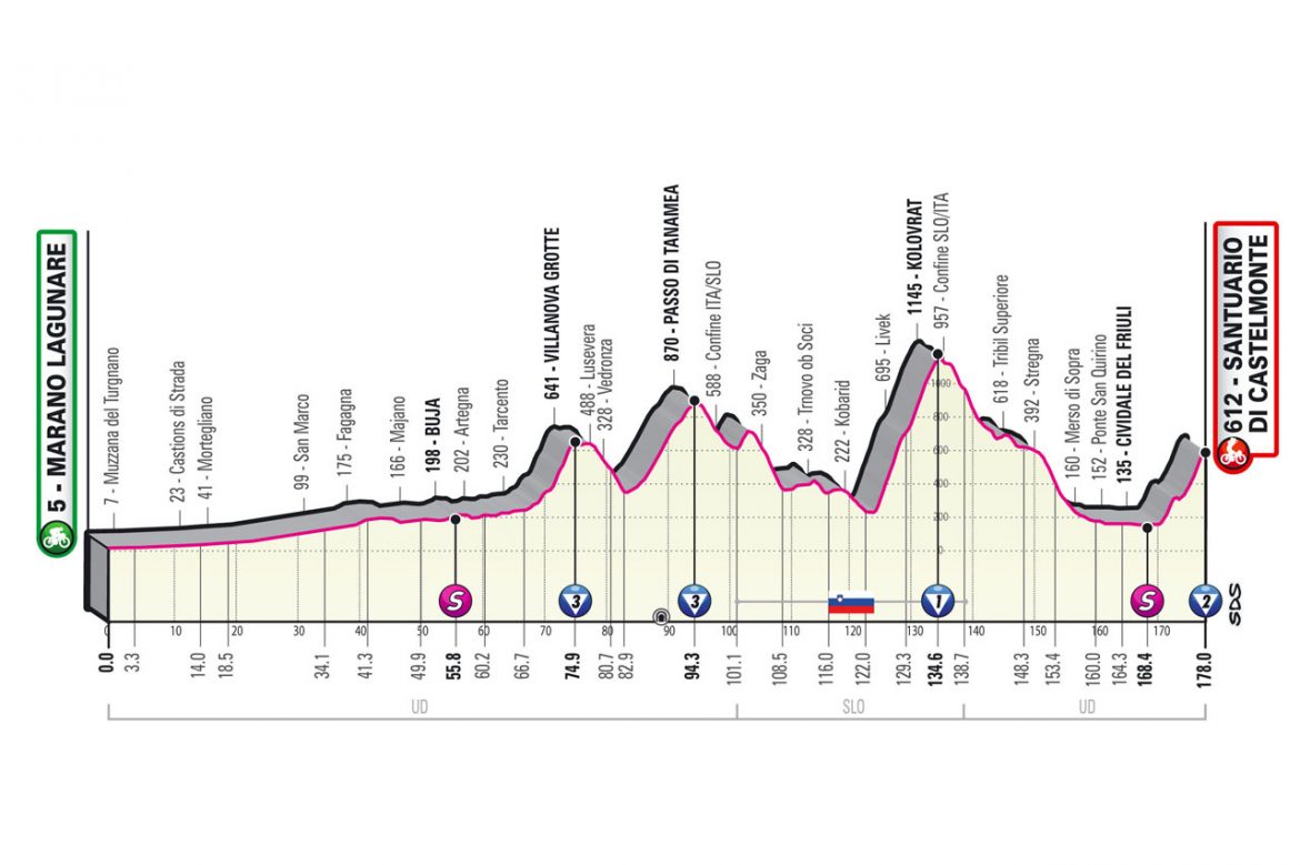 La fuga è stata caratterizzata da un drappello di corridori composto da: Andrea Vendrame dell’AG2R Citroën, Mathieu Van der Poel dell’Alpecin-Fenix, Domen Novak della Bahrain Victorious, Lennard Kämna della Bora-hansgrohe, Edoardo Zardini della Drone Hopper-Androni Giocattoli, Gijs Leemreize, Sam Oomen della Jumbo-Visma, Sylvain Moniquet della Lotto Soudal, Antonio Pedrero della Movistar, Mauri Vansevenant, Davide Ballerini della Quick-Step Alpha Vinyl, Thymen Arensman della DSM, Giulio Ciccone della Trek-Segafredo, Alessandro Covi e Davide Formolo dell’UAE Team Emirates.