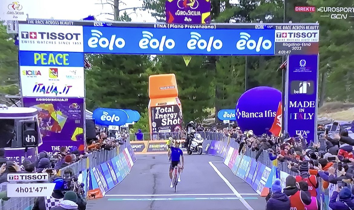 L’ultima tappa del Giro di Sicilia è stata pazzesca in tutti i chilometri percorsi da Raglna fino ad arrivare sull’Etna. Gli ultimi istanti della frazione hanno emozionato i tifosi siciliani e non che hanno accorso e applaudito la carovana della corsa sicula. A vincere la tappa è stato Damiano Caruso del team Italia che a 2 chilometri dal traguardo ha staccato Jefferson Cepeda della Drone Hopper-Androni Giocattoli e Vincenzo Nibali dell’Astana Qazaqstan. Per il siciliano è la prima vittoria stagionale e soprattutto il primo trionfo in una corsa a tappe. Cresciuto come gregario in tutte le squadre dove ha militato, il ragusano al Giro di Sicilia ha dimostrato ottima attitudine al comando e soprattutto ad avere una grande gamba rispetto a tutti gli altri. Per Damiano Caruso vittoria anche della classifica generale. Secondo posto per Meintjes che ha rimontato e superato Cepeda e Nibali.