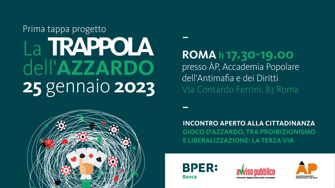 Si svolgerà a Roma, presso ÀP Accademia Popolare dell’Antimafia e dei Diritti, la tappa inaugurale de “La Trappola dell’Azzardo”, un progetto ideato da BPER Banca e Avviso Pubblico, al fine di prevenire il fenomeno del gioco d’azzardo patologico, sempre più diffuso tra le giovani generazioni.