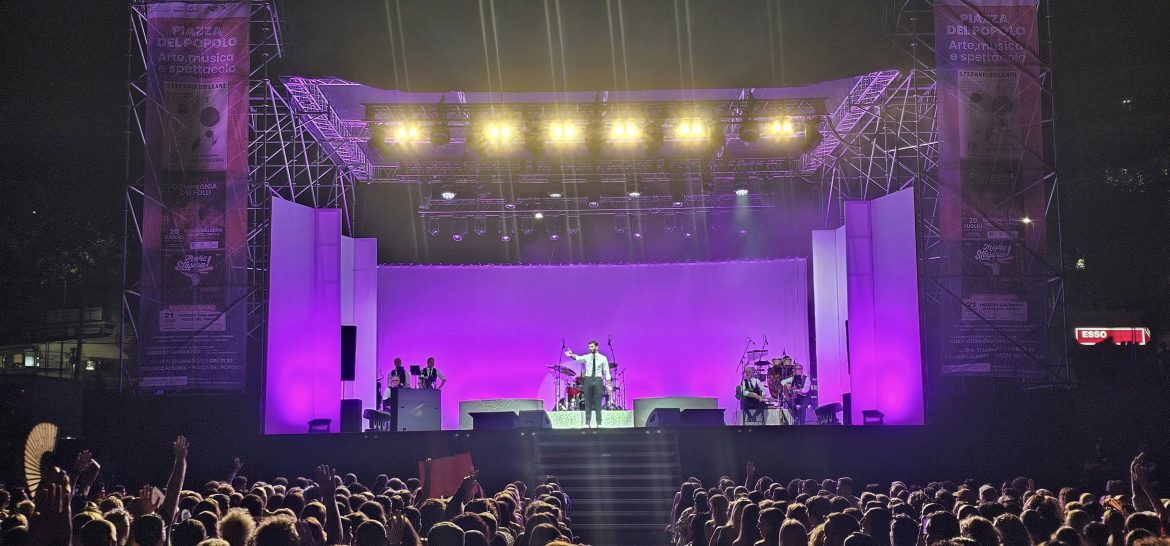 Apprezzatissimi e di altissimo livello artistico tutti gli appuntamenti. Dopo l’incantevole ed esclusivo live del quintetto stellare di Stefano Bollani, tra i musicisti italiani più acclamati al mondo, accompagnato da Jeff Ballard, batteria, Larry Grenadier, contrabasso, Vincent Peirani, fisarmonica, Mauro Refosco, percussioni, Piazza del Popolo si è completamente accesa con “Fuoco”, lo straordinario spettacolo della Compagnia dei Folli di Ascoli Piceno, che ha stupito adulti e bambini con magiche coreografie di teatro-danza, esplosioni pirotecniche sincronizzate e danze su trampoli. Inevitabile, infine, dopo l’audience televisivo da record, il successo di Stefano De Martino, che ha strappato sorrisi e ha regalato puro divertimento per circa due ore, insieme agli orchestrali della Disperata Erotica Band, al maestro e pianista Pino Perris e al suo gruppo di ballo. Il conduttore e mattatore di Affari Tuoi, attore, ballerino e cantante, ha presentato uno spettacolo ricco di musica, canzoni, ironia, balli, improvvisazioni. E’ perfino sceso tra il pubblico in visibilio, trascinando sul palcoscenico alcuni spettatori, coinvolti in gag esilaranti, seguiti da lunghi applausi.
