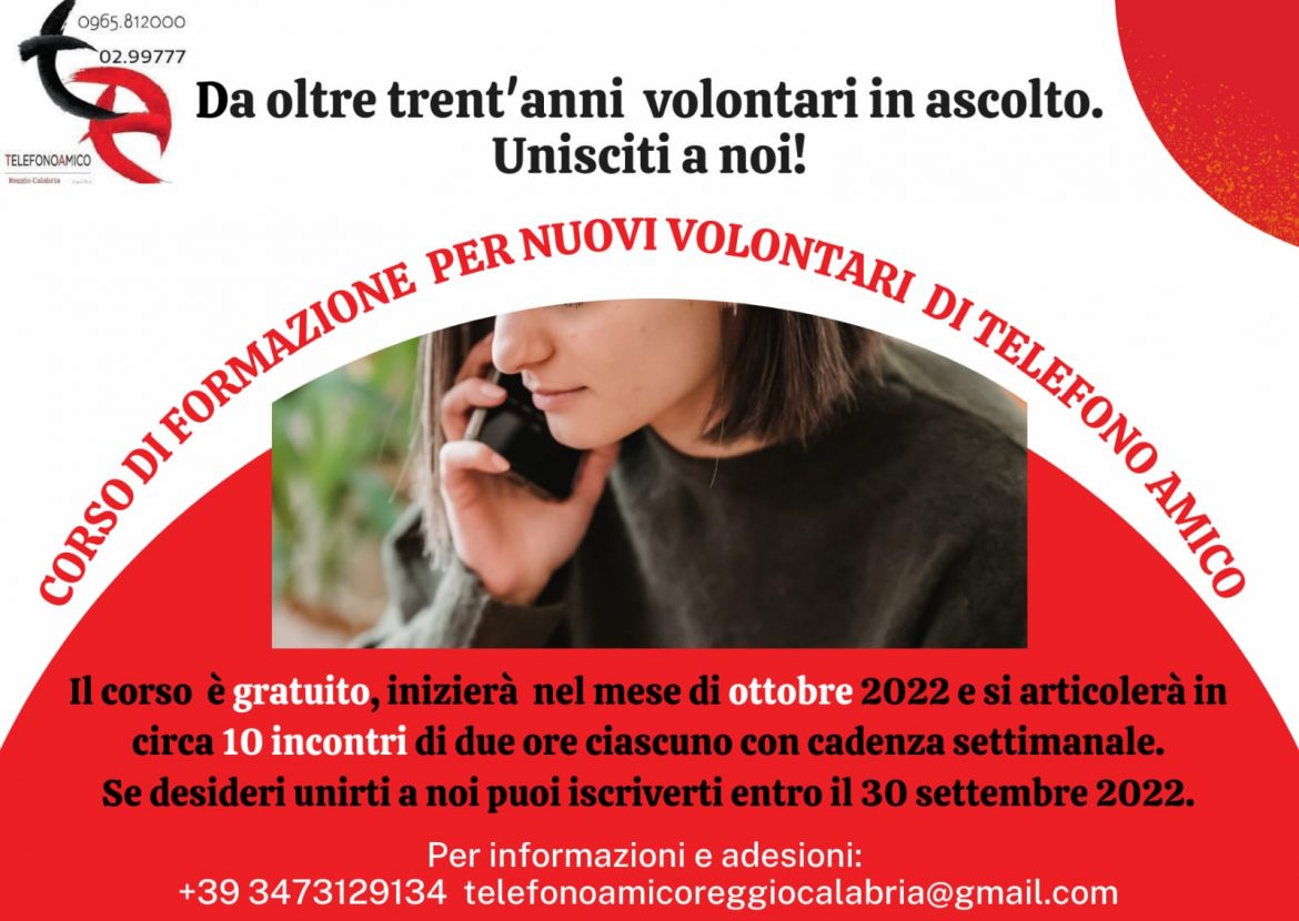 Per iscriversi c’è tempo fino al 30 settembre 2022: basta inviare una e-mail all’indirizzo telefonoamicoreggiocalabria@gmail.com oppure telefonare o scrivere un messaggio al numero +39 3473129134.