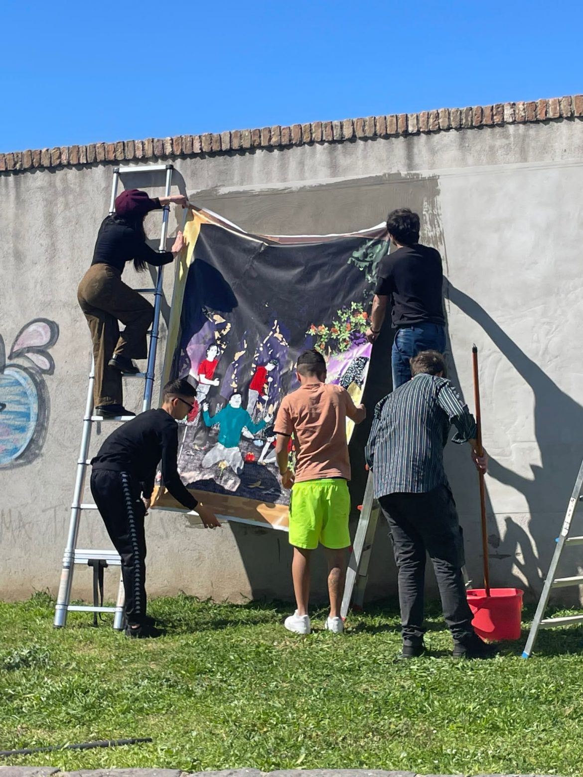Abbiamo pulito, piantumato ed annaffiato anche ad agosto con un caldo torrido. E abbiamo ricominciato dopo che trovavamo sporco anche il giorno dopo che avevamo pulito. Tante le risorse spontanee messe in campo, di pulizia, di piantumazione, di ricercatezza artistica, senza fermarci fino ad ieri dove siamo arrivate e arrivati ad un’altra tappa. Un’opera artistica collettiva, che segue altri murales artistici esposti e poi strappati da mani ignote, oggi fa ancora più bella piazza Canonico. È un manifesto artistico in stampa ecosolvente, dipinto con pittura acrilica di dimensioni 3m x 2,15m che diciassette ragazze e ragazzi affidati alla Ufficio servizio sociale per minori e alla Comunità ministeriale di Reggio Calabria hanno ideato e realizzato con la guida dell’artista Bruno Salvatore Latella ed il progetto di Streetisculture.