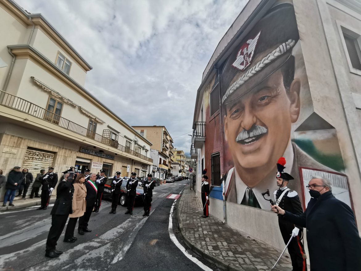 E’ stato Inaugurato stamattina, a Diamante, il murale realizzato dall’artista Agostino Cirimele, dedicato al generale dei carabinieri Carlo Alberto dalla Chiesa. A scoprire il Murale sono stati la prefetta di Cosenza Vittoria Ciaramella, il comandante della Legione Carabinieri Calabria Pietro Salsano e il sindaco di Diamante Ernesto Magorno. Presenti all’evento le massime rappresentanze delle forze dell’ordine, il presidente della Commissione anti ‘ndrangheta del Consiglio regionale Pietro Molinaro e numerosi sindaci, autorità religiose, rappresentanti dell’Anc, altre associazioni e cittadini. La mattinata è proseguita al Cineteatro Vittoria, nel quale è esibita la Fanfara dei Carabinieri del 10mo Reggimento Campania, diretta dal maestro Luca Berardo e accompagnata da numerosi applausi. “È una giornata di cambiamento e di crescita – ha detto il sindaco Magorno – voluta affinché si rafforzi l’ideale ponte tra i cittadini e le istituzioni”. “Nella ricorrenza della 28ma Giornata della Memoria e dell’Impegno in ricordo delle vittime innocenti – ha sottolineato la prefetta Vittoria Ciaramella – è stato importante omaggiare attraverso l’arte e in un luogo simbolo chi come il generale dalla Chiesa ha sacrificato la vita per combattere il malaffare”. Anche Salsano, ha voluto ricordare la figura di Carlo Alberto dalla Chiesa e ringraziare la Città di Diamante, per l’omaggio che ha riservato alla memoria del generale dell’Arma e per l’accoglienza ricevuta oggi. Particolarmente toccanti ed applauditi dal pubblico i contributi offerti dagli studenti dell’Istituto comprensivo e dell’Iiss: canzoni e riflessioni dedicate al tema della giornata e al ricordo del generale dalla Chiesa. (ANSA).