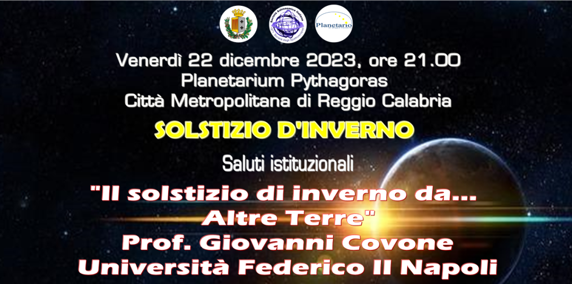 Domani alle ore 21.00 Planetarium Pythagoras della Città Metropolitana di Reggio Calabria celebra il solstizio d’inverno da “Altre Terre”.