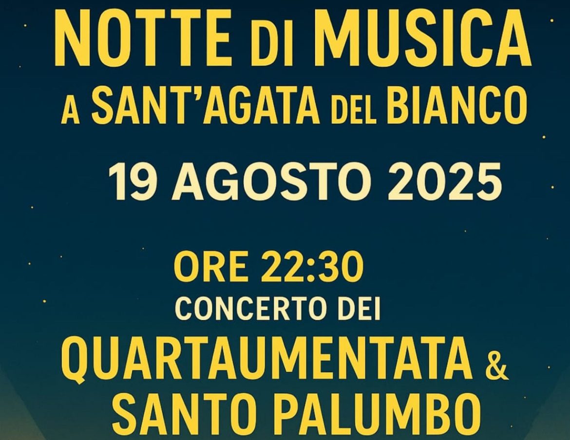 E ancora, ‘Sonu Anticu’ a Palizzi, ‘Sanremo & Sanremo’ a Mammola, ‘Furios Band’ ad Agnana stasera; ‘Concerto orchestra di fiati Giuseppe Rechichi’ domani a Monasterace; ‘New dance tarantelle’ il 21 agosto a Gerace; ‘La Storia del Rap Italiano’ a Locri il 22 agosto; Orchestra di Fiati “Città di Pazzano” concerto sinfonico a Pazzano il 23 agosto; così come, sempre il 23 agosto, a Laureana di Borrello si esibiranno i giovani musicisti dell’ Associazione Culturale Musicale Giovanile Della Piana; e poi, i ‘Kalavria’ a Santo Stefano e ‘Lio’ a Giffone per chiudere il programma della giornata.