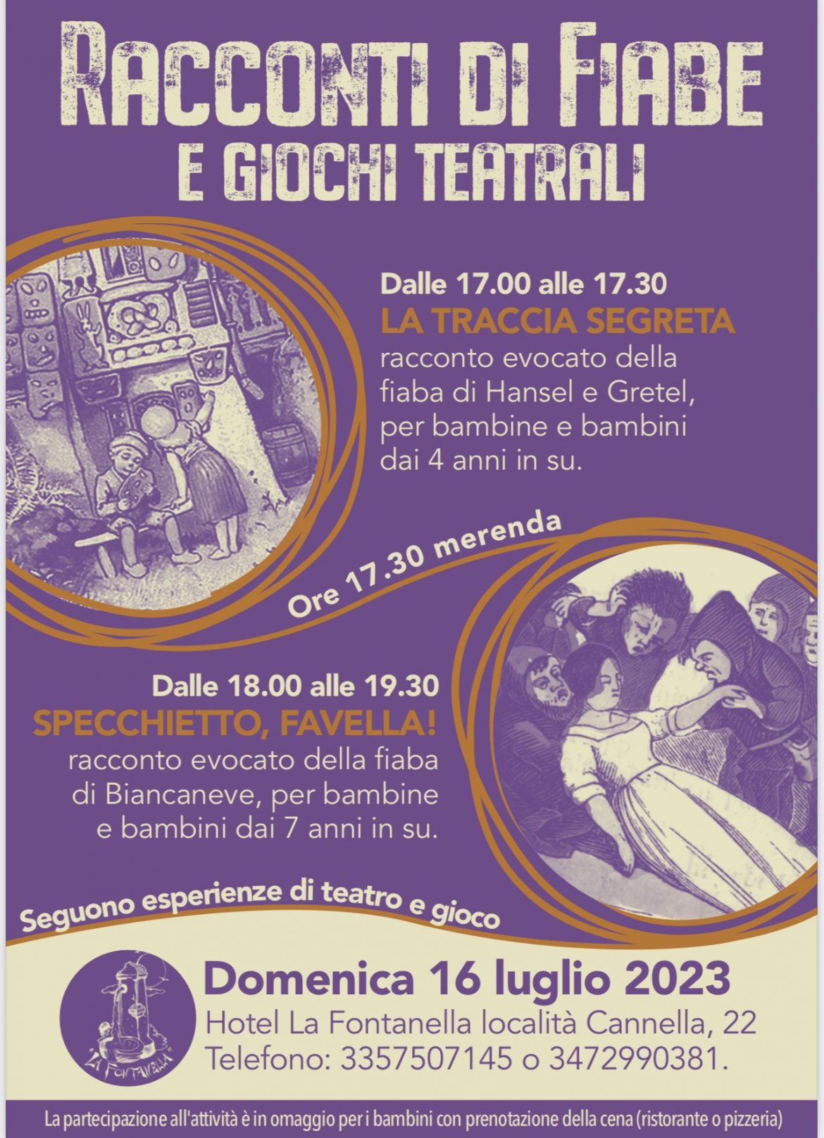 L’Hotel la Fontanella a Spadola, in provincia di Vibo Valentia, organizza per domenica 16 luglio: “Fiabe ed esperienze per Bambine e Bambine’ guidate da Chiara H Savoia, Attrice, Regista e Pedagoga di base a Milano.