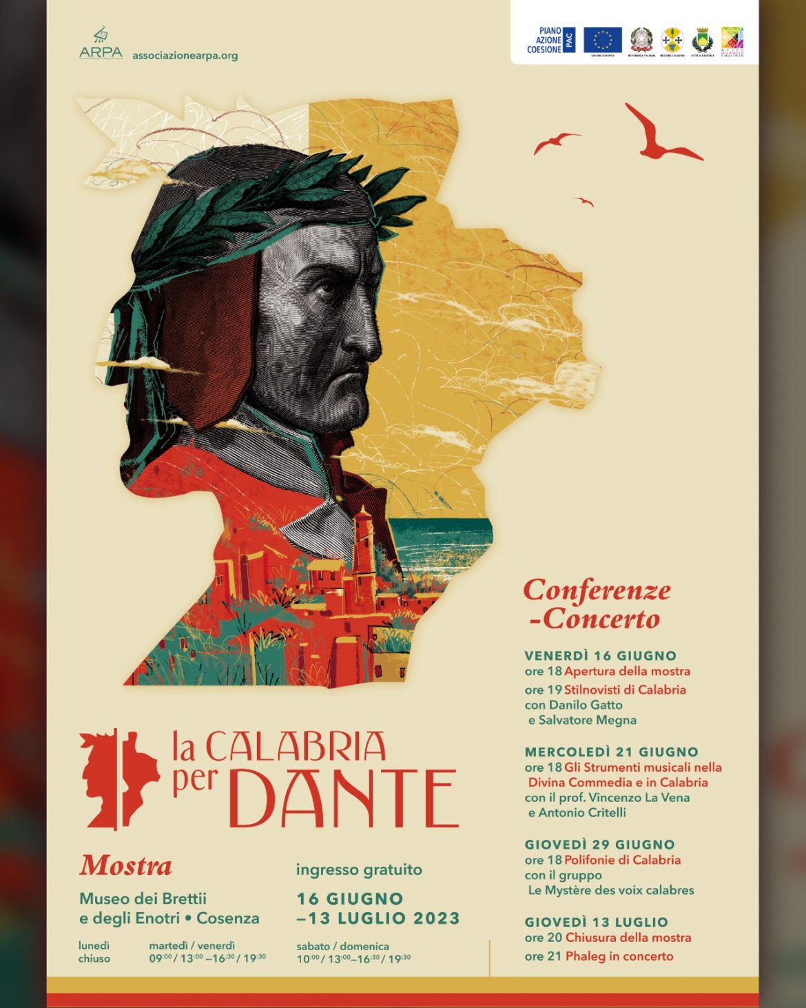 Da venerdì 16 giugno si sposta a Cosenza, nel Museo dei Brettii e degli Enotri, la seconda tappa di un viaggio entusiasmante tra i luoghi danteschi in Calabria, alla scoperta di un legame in parte inesplorato: quello tra la nostra regione e il Sommo Poeta, Dante Alighieri. Dopo Crotone, nella Torre Aiutante nel Castello di Carlo V, le suggestioni della Divina Commedia disseminate tra la bellezza e l’armonia paesaggistica e culturale si amplificano dal capoluogo bruzio e diventano il cuore del progetto “La Calabria per Dante”, prodotto per la prima volta in occasione del 700° anniversario della morte del Sommo Poeta, poi rinviato a causa del covid ed ora finalmente messo in opera per l’anno 2023. Il progetto porta la firma dell’associazione “Arpa”, l’Associazione di Ricerca, Produzione ed Animazione del Territorio che ha come oggetto prioritario la ricerca nel campo delle tradizioni popolari e la valorizzazione delle risorse endogene. L’Arpa Promuove attività di carattere culturale, artistico, formativo e editoriale per il recupero del patrimonio di tradizioni orali e la creazione di occasioni di crescita sociale ed economica del territorio.