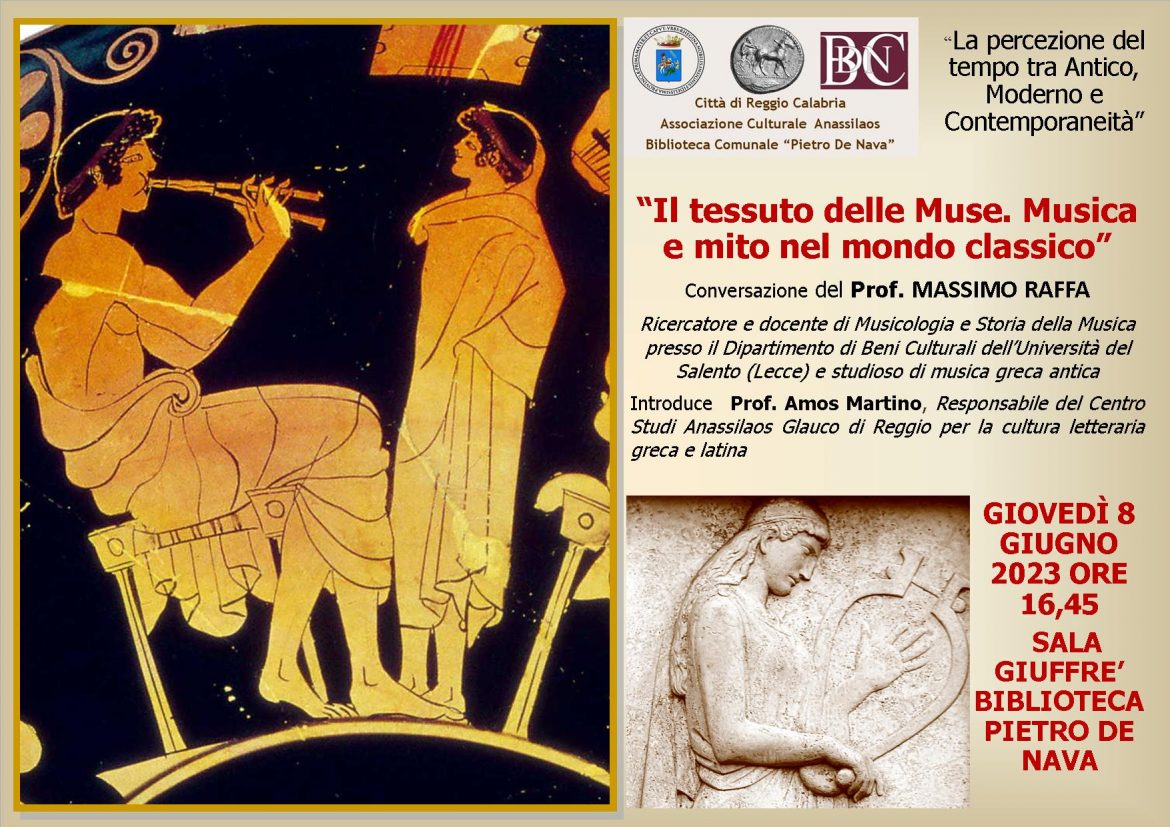 Proseguono presso la Sala Giuffrè della Biblioteca “Pietro de Nava” gli incontri sul tema “La percezione del tempo tra Antico, Moderno e Contemporaneità” promossi dall’Associazione Culturale Anassilaos congiuntamente con la stessa Biblioteca, con il patrocinio del Comune di Reggio Calabria. “Il tessuto delle Muse. Musica e mito nel mondo classico” sarà il tema della conversazione del Prof. Massimo Raffa, ricercatore e docente di Musicologia e Storia della Musica presso il Dipartimento di Beni Culturali dell’Università del Salento (Lecce) e studioso di musica greca antica. A introdurre il relatore il Prof. Amos Martino, responsabile del Centro Studi Anassilaos “Glauco di Reggio” per la Cultura Letteraria Greca e Latina. Attraverso i miti musicali più noti del vasto patrimonio ellenico, come quelli della nascita delle Muse, di Hermes inventore della lira, di Apollo e Marsia, di Odisseo e le Sirene, di Orfeo, e di altri ancora, il relatore cercherà di illustrare l’importanza e i poteri attribuiti alla musica lungo lo sviluppo della civiltà greca, dai primordi magico-sciamanici del mondo arcaico, alle riflessioni filosofiche dell’età classica, fino all’incontro con la nascente spiritualità cristiana, per mostrare come anche il rapporto dell’uomo contemporaneo e la musica si muova intorno a temi e problemi che già il pensiero greco aveva individuato, ora con l’intuizione dei poeti, ora con la lucidità dei filosofi. La musica ebbe un ruolo molto importante anche nella Rhegion greca e la stessa poesia che noi oggi ci limitiamo a leggere o declamare, a seconda dei casi, veniva “cantata” da un coro o da una sola voce al suono di diversi strumenti musicali.. Lo storico Pausania, ad esempio, ci informa di una festa, forse annuale, probabilmente in onore di Apollo e Artemide o di entrambe le divinità, che si celebrava a Reggio, alla quale era solito prendere parte un coro di trentacinque ragazzi, con tanto di maestro e flautista, che i Messeni inviavano a Reggio. Il naufragio della nave nel viaggio di ritornò interruppe forse per sempre questa tradizione. Lo storico Timeo ci informa invece di un agone citaredico, cioè di una gara con l’uso della cetra, svoltosi a Delfi, tra il reggino Aristone e il locrese Eunomo. Lo stesso poeta reggino Ibico, secondo Ateneo di Naucrati, sarebbe stato l’inventore di uno strumento musicale, la lira fenicia, detta anche sambuca, mentre Anacreonte, che il poeta reggino aveva incontrato a Samo presso la corte di Policrate, aveva creato il barbiton.