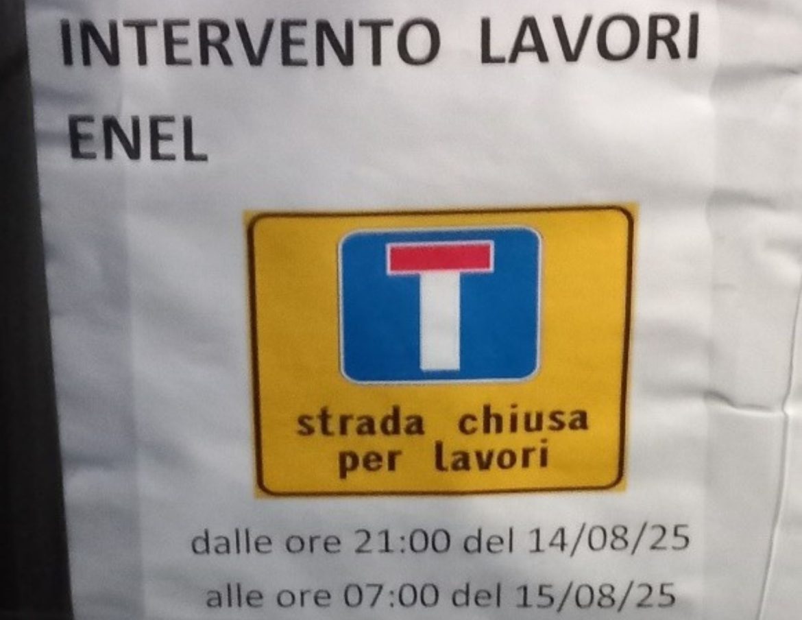 Ancora una volta la Diramazione Vico I di Via Lia, unica strada di accesso e uscita di ben tre popolosi condomini chiusa, per lavori in corso, come si evince dall’allegato cartello fino alle ore 7.00 del 15 agosto senza tenere in alcun conto i rischi per gli abitanti dei quartieri impossibilitati a lasciare le proprie abitazioni nell’eventualità di una fuga dovuta a un qualsiasi evento personale (di carattere medico) o naturale. Non è la prima volta che ciò accade in questa via – e altre volte abbiamo segnalato le problematiche relative e i rischi legati alla chiusura di questa che costituisce una unica via di fuga – in spregio totale alle più banali ed evidenti norme di sicurezza e nell’indifferenza delle pubbliche autorità che hanno autorizzato tale chiusura che sono e saranno responsabili sul piano amministrativo e penale di qualsiasi problema dovesse o potesse verificarsi nelle ore in di blocco della strada. Di questo – e speriamo nulla accada – ci faremo come sempre parte attiva.