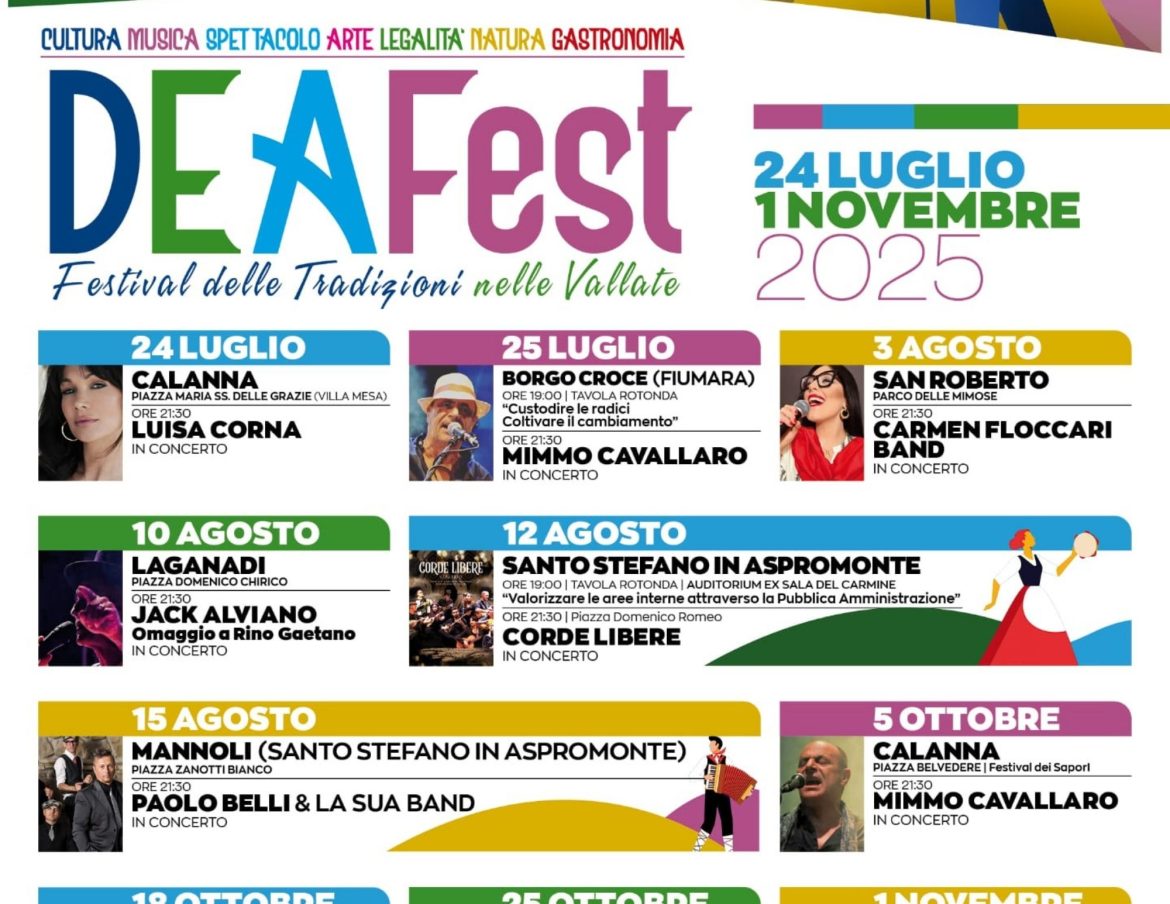 I Comuni della Vallata del Gallico, con il supporto della Regione Calabria ed in partnership con l’Università degli studi Mediterranea, anche quest’anno hanno allestito uno dei cartelloni più attesi della provincia di Reggio Calabria, e lo hanno fatto estendendo i confini delle loro iniziative alla adiacente Vallata del Catona, quella dove appunto dimorano Borgo Croce (Fiumara) e San Roberto, location di due appuntamenti della kermesse. È la prima volta nella storia del DEAFest. Non a caso per l’occasione è stato cambiato anche il sottotitolo dell’evento in “Festival delle Tradizioni nelle Vallate” anziché “nella Vallata del Gallico”.