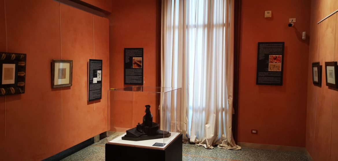 Arricchisce ulteriormente l’esposizione la scultura in bronzo “Sviluppo di una bottiglia nello spazio”, anch’essa della Collezione Bilotti, ideata nel 1912, il cui gesso fu, dopo la morte di Boccioni e varie vicissitudini, fortunosamente recuperato da una discarica milanese, in pezzi colorati di rosso minio, e ricostruito, per poi dare seguito ad alcune riproduzioni che si trovano in prestigiosi musei e collezioni private.