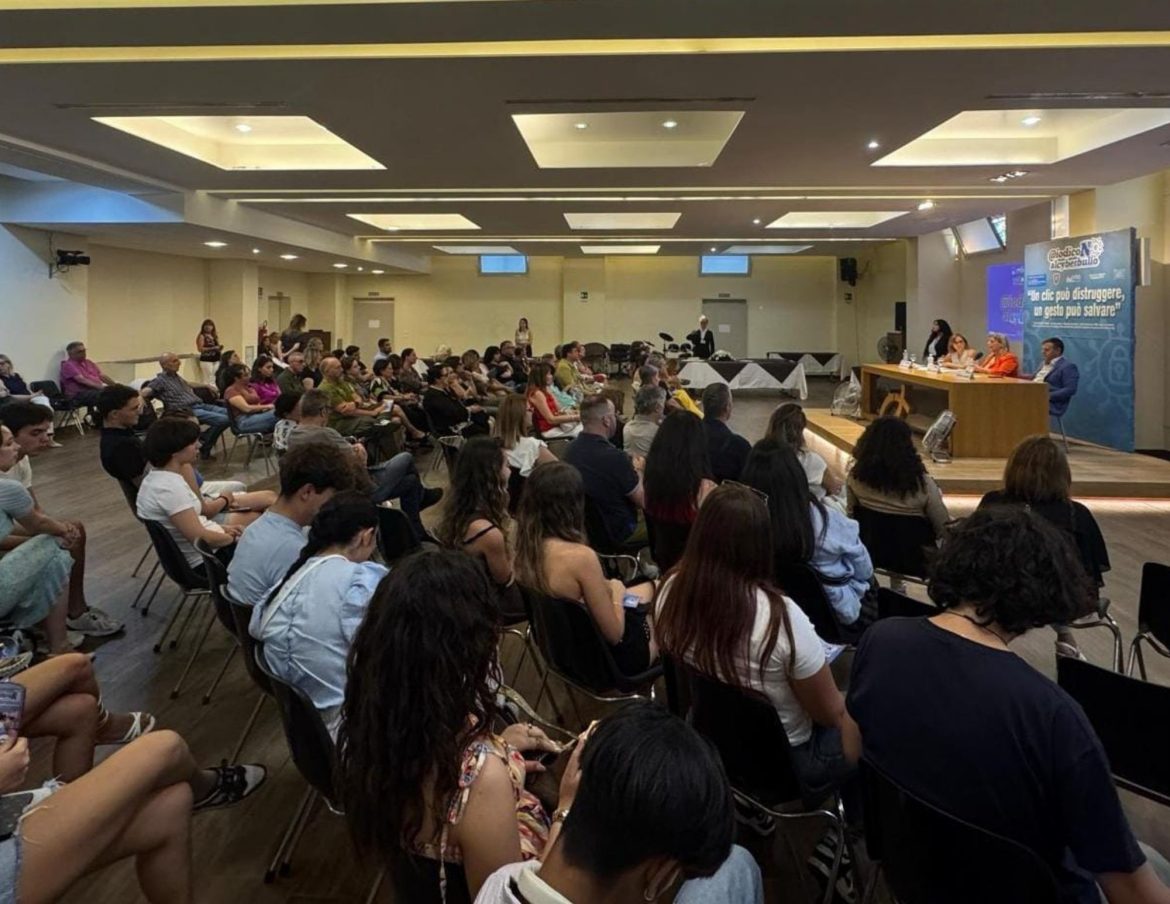 Nel suo appassionato intervento, la Presidente Romeo ha richiamato le radici cristiane dell’ente promotore, ricordando le parole del fondatore Gilberto Perri: «Nel bene del tuo prossimo sta il tuo bene». «Questo progetto – ha dichiarato – nasce dalla nostra visione cristiana: oggi più che mai è urgente sensibilizzare ragazzi e famiglie al tema della non violenza, del rispetto reciproco e dell’amore per l’altro. I numeri ci dicono che siamo sulla strada giusta: oltre 500 ragazzi coinvolti nei laboratori attivati, testimonianze raccolte, storie condivise e coraggio riacceso. Alcuni ragazzi hanno persino trovato finalmente la forza di denunciare. Questo è il più grande risultato. Una best practice da replicare e far crescere.»