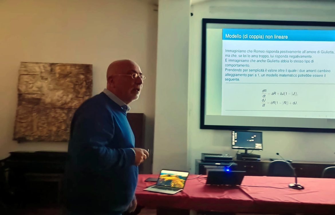 Successivamente, Francesco Oliveri (MIFT) ha affascinato il pubblico con “Matematica & Amore (pétit divertissement)”, un’analisi leggera ma profonda su come i modelli matematici e la teoria del caos possano spiegare dinamiche e imprevedibilità nelle relazioni umane, dimostrando che la matematica può essere tanto romantica quanto pratica.